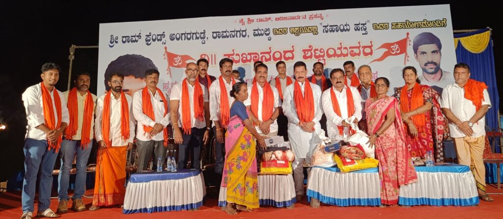 ಮುಲ್ಕಿ: ಇಲ್ಲಿಗೆ ಸಮೀಪದ ಅಂಗರಗುಡ್ಡೆ ಶ್ರೀರಾಮ್ ಫ್ರೆಂಡ್ಸ್ ವತಿಯಿಂದ ಬಿಜೆಪಿ ನಾಯಕ ದಿ. ಸುಖಾನಂದ ಶೆಟ್ಟಿ ಸ್ಮರಣಾರ್ಥ ಸುಮಾರು ನೂರಕ್ಕಿಂತಲೂ ಹೆಚ್ಚು ಅಶಕ್ತ ಕುಟುಂಬಗಳಿಗೆ ಸಹಾಯ ಹಸ್ತ ಹಾಗೂ ಹಗ್ಗ ಜಗ್ಗಾಟ ಪಂದ್ಯಾಟ ಶ್ರೀರಾಮ ಭಜನಾ ಮಂದಿರ ಅಂಗರಗುಡ್ಡೆಯಲ್ಲಿ ನಡೆಯಿತು.