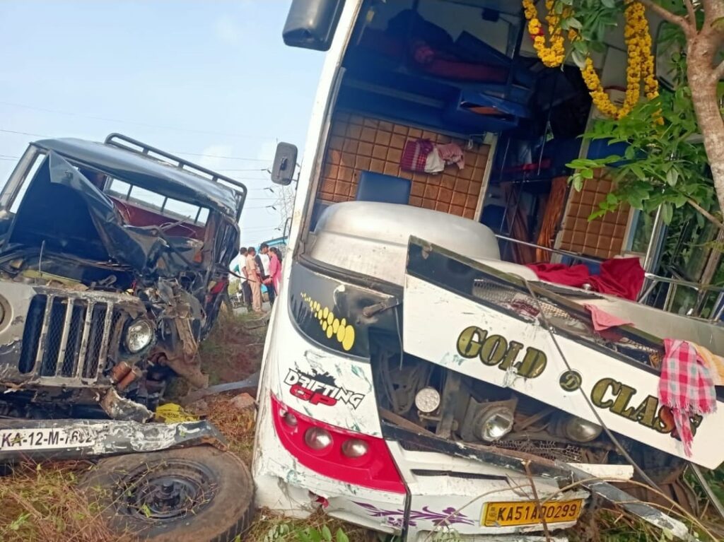 ಕಾರ್ಕಳ:ಖಾಸಗಿ ಬಸ್ ಹಾಗೂ ಜೀಪ್ ನಡುವೆ ಭೀಕರ ಅಪಘಾತ ಸಂಭವಿಸಿದ ಪರಿಣಾಮ ಓರ್ವ ಸ್ಥಳದಲ್ಲೇ ಮೃತಪಟ್ಟು, ಇಬ್ಬರು ಗಂಭೀರವಾಗಿ ಗಾಯಗೊಂಡ ಘಟನೆ ನಿಟ್ಟೆ ಗ್ರಾಮದ ಮಂಜರ್ಪಲ್ಕೆ ಎಂಬಲ್ಲಿ ಇಂದು ನಡೆದಿದೆ.