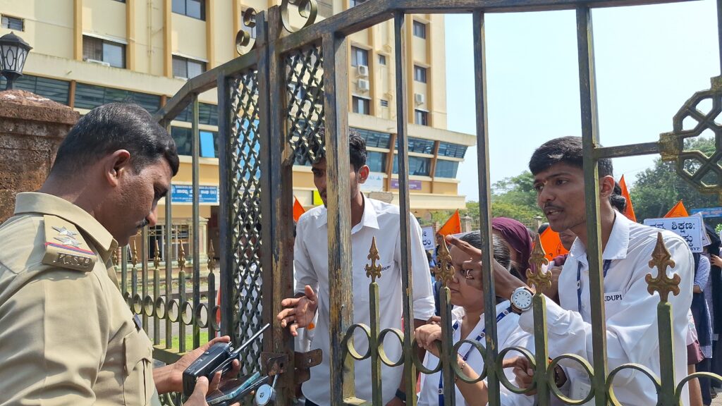 ಜಿಲ್ಲಾಧಿಕಾರಿ ಸಮಯಕ್ಕೆ ಸರಿಯಾಗಿ ಪ್ರತಿಭಟನಾ ಸ್ಥಳಕ್ಕೆ ಬಾರದಿದ್ದಾಗ ವಿದ್ಯಾರ್ಥಿಗಳು ಮತ್ತು ಪೊಲೀಸರ ನಡುವೆ ಮಾತಿನ ಚಕಮಕಿ ನಡೆಯಿತು. ಈ ವೇಳೆ ವಿದ್ಯಾರ್ಥಿಗಳು ಡಿಸಿ ಕಚೇರಿ ಮುತ್ತಿಗೆಗೆ ಪ್ರಯತ್ನಿಸಿದರು. ಆದರೆ ಪೊಲೀಸರು ಪ್ರತಿಭಟನಾ ನಿರತ ವಿದ್ಯಾರ್ಥಿಗಳನ್ನು ಗೇಟಿನ ಮುಂಭಾಗದಲ್ಲಿ ತಡೆದರು. ಆ ಬಳಿಕ ಅಪರ ಜಿಲ್ಲಾಧಿಕಾರಿ ಸ್ಥಳಕ್ಕೆ ಆಗಮಿಸಿ ಮನವಿ ಸ್ವೀಕರಿಸಿದರು.