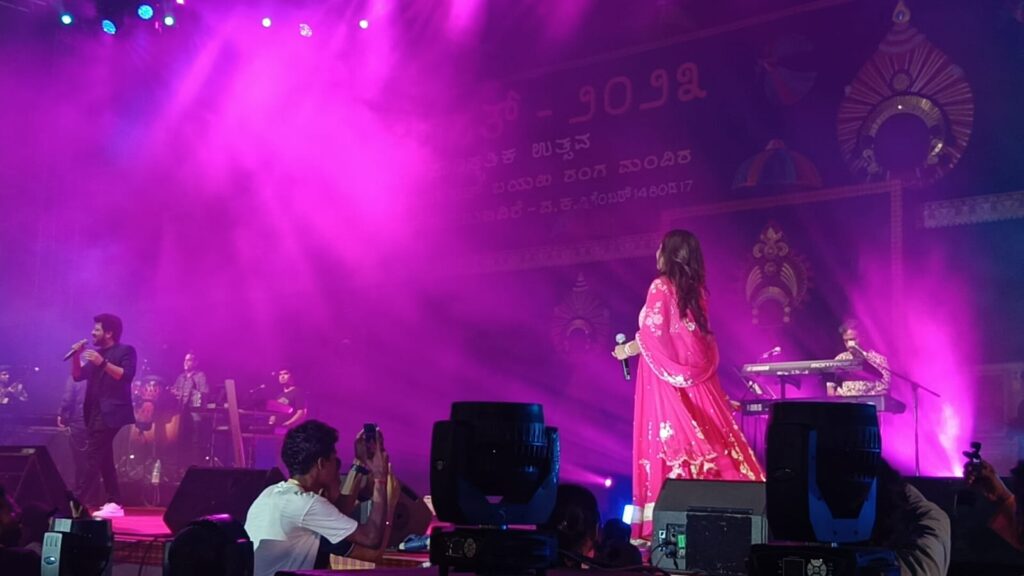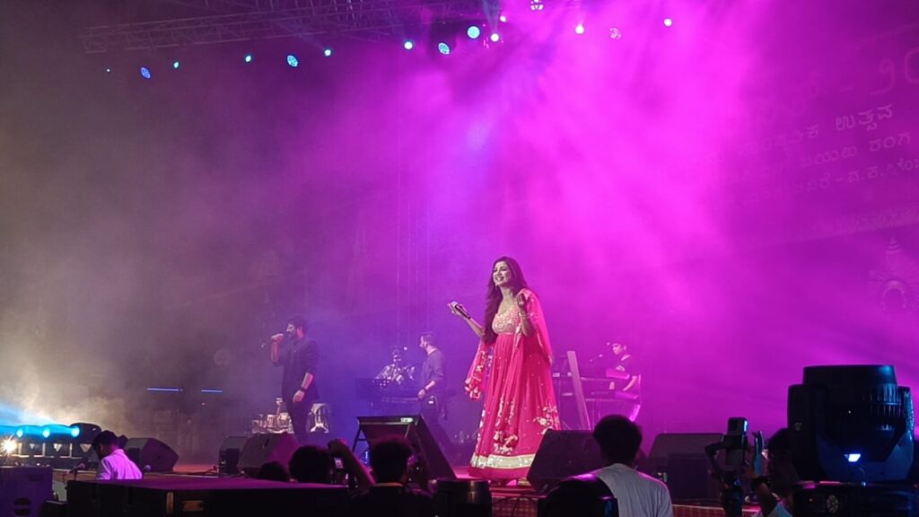 ಗಗನವೇ ಬಾಗಿ ಭುವಿಯನು ಕೇಳಿದಾ ಹಾಗೆ...' ಉಲಿದಾಗ ಆಗಸದಲ್ಲಿನ ಅರ್ಧ ಚಂದ್ರನೂ ಗುಲಾಬಿ ಧಿರಿಸಿನ ಬೆಡಗಿ ರಾಗಕ್ಕೆ ಬೆಳದಿಂಗಳು ಸೂಸಿದ. ಕನ್ನಡದ ಹಾಡುಗಳನ್ನು ಹಾಡಿ ನಾನು ಕೃತಜ್ಞಳಾಗಿದ್ದೇನೆ’ ಎನ್ನುತ್ತಲೇ.. ಬಾಜಿರಾವ್ ಮಸ್ತಾನಿ ಸಿನಿಮಾದ ಮಸ್ತಾನಿ ಹೋಗಯೀ..' ಹಾಡಿದರು. ಅವರಿಗೆ ಕಿಂಜಲ್ ಚಟರ್ಜಿ ಯುಗಳ ಗೀತೆಯ ಮೂಲಕ ಸಾಥ್ ನೀಡಿದರು. ಬಳಿಕಮನ್ ಕೀ ಲಾಗೇ…’ ಯುಗಳ ಹಾಡಿದರು.