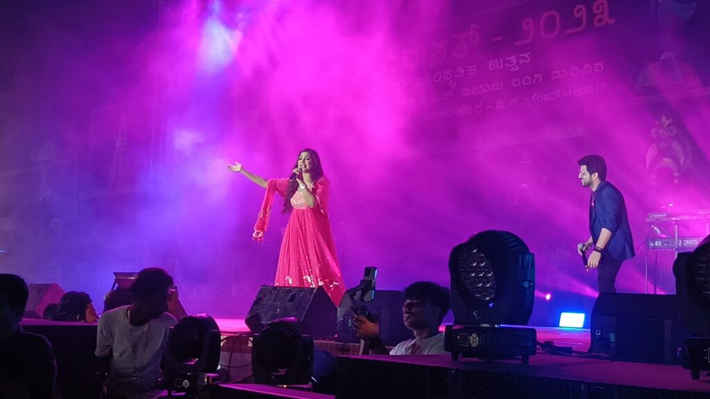 ಪ್ರೇಕ್ಷಕರು ತಮ್ಮ ಮೊಬೈಲ್ ಲೈಟ್ ಆನ್ ಮಾಡಿ ಮೇಲೆ ಬೀಸಿದಾಗ ಸಭಾಂಗಣದಲ್ಲಿ ನಕ್ಷತ್ರ ಲೋಕವೇ ಸೃಷ್ಟಿಯಾಯಿತು. ತಾರೇ ಜಮೀನ್ ಪೇ ಹೇ' ಎಂದ ಶ್ರೇಯಾ ಅವರುತೇರಿ ಓರ್…’ ಡುಯೆಟ್ ಹಾಡಿದರು. ಕಿಸೀಕಾ...' ಎಂದು ವಿದ್ಯಾರ್ಥಿಗಳು ಪ್ರತಿ ಅಲೆ ಹೊಮ್ಮಿಸಿದರು. ಇಟ್ಸ್ ಇನ್ ಕ್ರೆಡಿಬಲ್’… ಎಂದ ಅವರು, ಈಗ ಕ್ರಶ್ ಹಾಡು' ಎಂದು,ಧೀರೇ ಧೀರೆ…’ ಗಾನ ಸುಧೆ ಹರಿಸಿದರು.