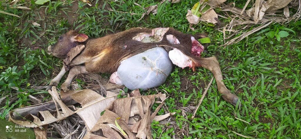 ಮಧ್ಯರಾತ್ರಿ ವೇಳೆ ಚಿರತೆ ಕರುವನ್ನು ಕೊಂಡುಹೋಗಿರಬಹುದು ಎಂದು ಶಂಕಿಸಲಾಗಿದೆ