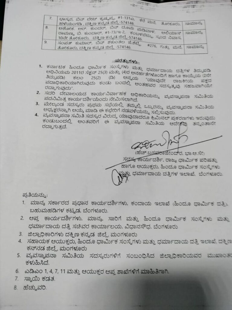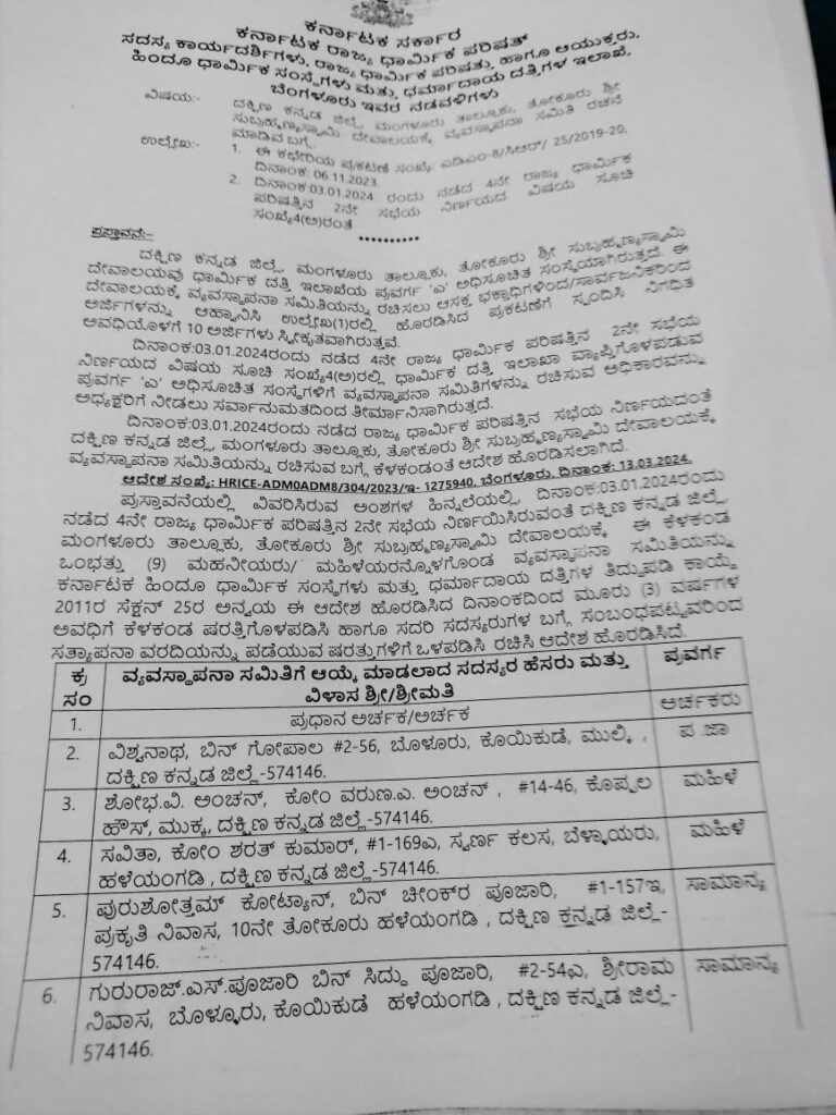 ಮುಲ್ಕಿ: ಹಳೆಯಂಗಡಿ ಸಮೀಪದ ತೋಕೂರು ಶ್ರೀ ಸುಬ್ರಹ್ಮಣ್ಯ ದೇವಸ್ಥಾನದ ನೂತನ ವ್ಯವಸ್ಥಾಪನಾ ಸಮಿತಿಯ ಸದಸ್ಯರಾಗಿ ಸರಕಾರ ನೇಮಕ ಮಾಡಿದೆ.