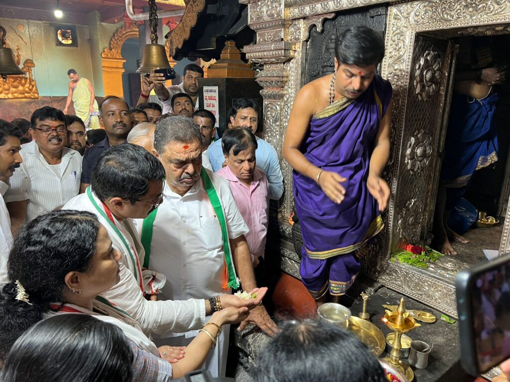 ಶರವು ಶ್ರೀ ಮಹಾಗಣಪತಿ ದೇವಸ್ಥಾನ, ಶ್ರೀ ಮಹಾಲಿಂಗೇಶ್ವರ ದೇವಸ್ಥಾನ, ಕಂಕನಾಡಿ ಶ್ರೀ ಬ್ತಹ್ಮಬೈದರ್ಕಳ ಗರೋಡಿಗೆ ತೆರಳಿ ವಿಶೇಷ ಪ್ರಾರ್ಥನೆ ಸಲ್ಲಿಸಿದರು. ನಂತರ ಕುದ್ರೋಳಿ ಶ್ರೀ ಗೋಕರ್ಣನಾಥೇಶ್ವರ ದೇವಸ್ಥಾನಕ್ಕೆ ಆಗಮಿಸಿ ವಿಶೇಷ ಅರ್ಚನೆ ಸಲ್ಲಿಸಿದ ಬಳಿಕ ಮೆರವಣಿಗೆಗೆ ಚಾಲನೆ ನೀಡಲಾಯಿತು.