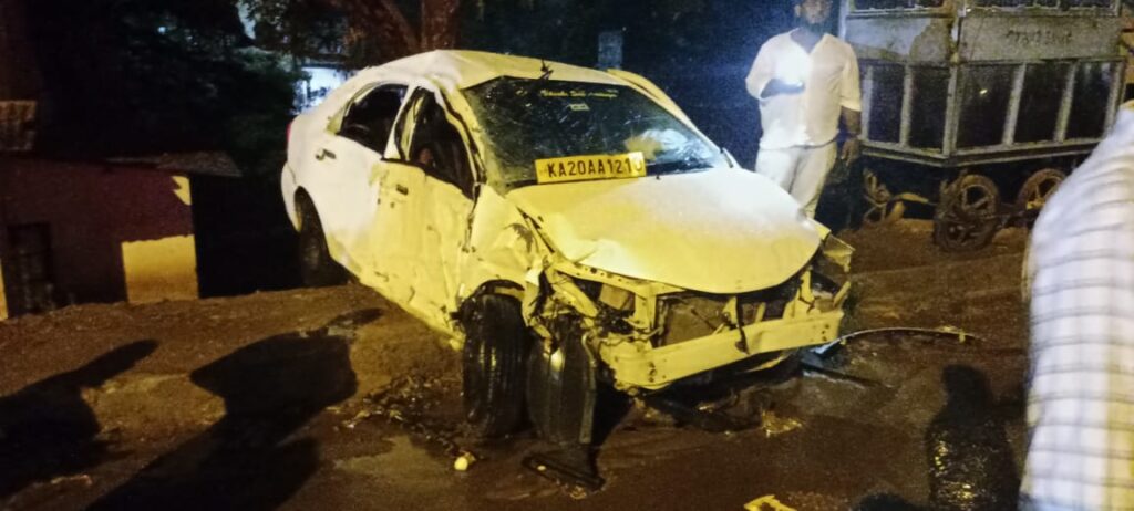 ಕಾರು ಮಂಗಳೂರು ವಿಮಾನ ನಿಲ್ದಾಣದಿಂದ ಉಡುಪಿಗೆ ತೆರಳುತ್ತಿತ್ತು. ಈ ವೇಳೆ ಮಳೆಯಾಗುತ್ತಿದ್ದ ಕಾರಣ ಚಾಲಕ ನಿಯಂತ್ರಣ ಕಳೆದುಕೊಂಡು ಹೆದ್ದಾರಿಗೆ ಇಡಲಾಗಿದ್ದ ಬ್ಯಾರಿಕೆಡ್ ಗೆ ಡಿಕ್ಕಿಹೊಡೆದು ಹಲವು ಬಾರಿ ಪಲ್ಟಿಯಾಗಿ ಹೆದ್ದಾರಿ ಪಕ್ಕದ ದಾರಿ ದೀಪದ ಬೃಹತ್ ಕಂಬಕ್ಕೆ ಡಿಕ್ಕಿ ಹೊಡೆದು ಸರ್ವಿಸ್ ರಸ್ತೆಯ ಬದಿಯಲ್ಲಿ ನಿಂತಿದೆ.