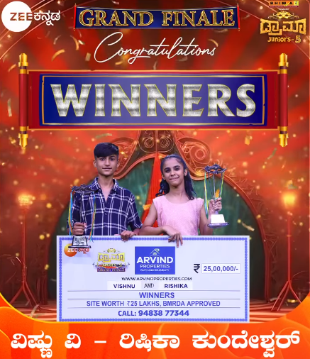 ಕಿರುತೆರೆಯ ಜನಪ್ರಿಯ ರಿಯಾಲಿಟಿ ಶೋಗಳಲ್ಲಿ ‘ಡ್ರಾಮಾ ಜ್ಯೂನಿಯರ್ಸ್’ ಕೂಡ ಒಂದು. ಮಕ್ಕಳಿನ ಪ್ರತಿಭೆಯನ್ನು ಬೆಳಕಿಗೆ ತರುವಂತಹ ಈ ಶೋ, ಜೀ ಕನ್ನಡ ವಾಹಿನಿಯಲ್ಲಿ ಪ್ರಸಾರವಾಗುತ್ತದೆ. ಅಂದಹಾಗೆ, ಕೆಲ ತಿಂಗಳ ಹಿಂದೆ ಶುರುವಾಗಿದ್ದ ‘ಡ್ರಾಮಾ ಜ್ಯೂನಿಯರ್ಸ್’ ಸೀಸನ್ 5ಕ್ಕೆ ಕೊನೆಗೂ ತೆರೆಬಿದ್ದಿದೆ. ಈ ಬಾರಿ ವಿಷ್ಣು ಕುಣಿಗಲ್ ಮತ್ತು ರಿಷಿಕಾ ಕುಂದೇಶ್ವರ ಅವರು ಜಂಟಿಯಾಗಿ ವಿನ್ನರ್ ಪಟ್ಟ ಪಡೆದುಕೊಂಡಿದ್ದಾರೆ.