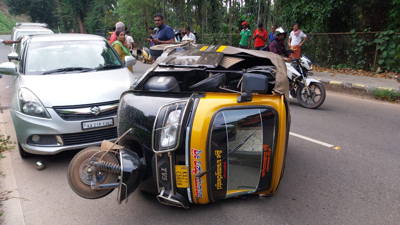 ನೆಲ್ಯಾಡಿಯ ಜಯಪ್ರಕಾಶ್ ಎಂಬವರಿಗೆ ಸೇರಿದ ಆಟೋ ರಿಕ್ಷಾ ಮಗುಚಿ ಬಿದ್ದ ಪರಿಣಾಮ ಹಿಂದಿನಿOದ ಬಂದ ಕಾರುಗಳು ಹಾಗೂ ಒಂದು ಆಟೋ ರಿಕ್ಷಾ ಪರಸ್ಪರ ಡಿಕ್ಕಿಯಾಗಿದೆ. ರಿಕ್ಷಾ ಚಾಲಕನಿಗೆ ಸಣ್ಣಪುಟ್ಟ ಗಾಯಗಳಾಗಿದ್ದು, ಡಿಕ್ಕಿಯಾದ ಮೂರು ಕಾರುಗಳು ಹಾಗೂ ರಿಕ್ಷಾ ಜಖಂಗೊOಡಿದೆ