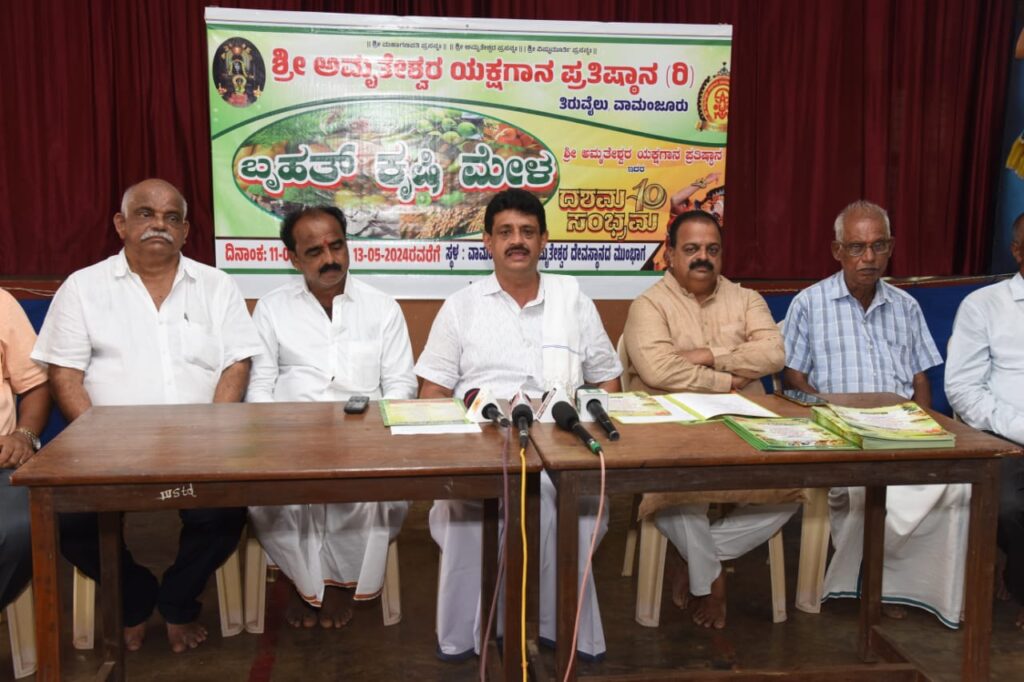 ದಕ್ಷಿಣ ಕನ್ನಡ ಜಿಲ್ಲಾ ಕೇಂದ್ರ ಸಹಕಾರಿ ಬ್ಯಾಂಕ್, ಸಾವಯವ ಕೃಷಿಕ ಗ್ರಾಹಕ ಬಳಗ, ಶ್ರೀ ಕ್ಷೇತ್ರ ಧರ್ಮಸ್ಥಳ ಗ್ರಾಮಾಭಿವೃದ್ಧಿ ಯೋಜನೆ ಹಾಗೂ ನವೋದಯ ಸ್ವ ಸಹಾಯ ಸಂಘ ಇದರ ಸಹಯೋಗದಲ್ಲಿ ಬೃಹತ್ ಕೃಷಿ ಮೇಳ ಮತ್ತು ಅಮೃತೇಶ್ವರ ಯಕ್ಷಗಾನ ಪ್ರತಿಷ್ಠಾನದ ದಶಮ ಸಂಭ್ರಮ ಕಾರ್ಯಕ್ರಮವು ಇದೇ ಮೇ 11ರಿಂದ 13ರವರೆಗೆ ವಾಮಂಜೂರಿನ ಶ್ರೀ ಅಮೃತೇಶ್ವರ ದೇವಸ್ಥಾನದ ಮುಂಭಾಗ ಜರುಗಲಿದೆ ಎಂದು ಗುರುಪುರ ವ್ಯವಸಾಯ ಸೇವಾ ಸಹಕಾರಿ ಅಧ್ಯಕ್ಷ ಓಂ ಪ್ರಕಾಶ್ ಶೆಟ್ಟಿ ಪತ್ರಿಕಾಗೋಷ್ಟಿಯಲ್ಲಿ ಮಾಹಿತಿ ನೀಡಿದರು.