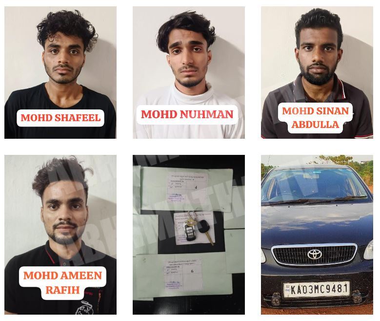 ಮಂಗಳೂರು ನಗರಕ್ಕೆ ಬೆಂಗಳೂರಿನಿಂದ ನಿಷೇಧಿತ ಮಾದಕ ವಸ್ತುವಾದ ಎಂಡಿಎಂಎ ನ್ನು ಖರೀದಿಸಿಕೊಂಡು ಕಾರಿನಲ್ಲಿ ಸಾಗಾಟ/ಮಾರಾಟ ಮಾಡುತ್ತಿದ್ದ ಬಗ್ಗೆ ಖಚಿತ ಮಾಹಿತಿಯನ್ನು ಪಡೆದ ಮಂಗಳೂರು ಸಿಸಿಬಿ ಪೊಲೀಸರು ಮಂಗಳೂರು ನಗರದ ದೇರಳಕಟ್ಟೆಯ ಪರಿಸರದಲ್ಲಿ ಆ ಕಾರನ್ನು ಪತ್ತೆ ಹಚ್ಚಿ ಕಾರಿನಲ್ಲಿದ್ದ ಮೊಹಮ್ಮದ್ ಅಮೀನ್ ರಾಫಿ(23), ಮೊಹಮ್ಮದ್ ಸಿನಾನ್ ಅಬ್ದುಲ್ಲಾ(23), ಮೊಹಮ್ಮದ್ ನೌಮಾನ್(22), ಮತ್ತು ಮೊಹಮ್ಮದ್ ಸಫೀಲ್ ಎಂಬವರನ್ನು ವಶಕ್ಕೆ ಪಡೆದುಕೊಂಡು 6,50,000/- ರೂ ಮೌಲ್ಯದ 270 ಗ್ರಾಂ ನಿಷೇಧಿತ ಮಾದಕ ವಸ್ತು ಎಂಡಿಎಂಎ, 4 ಮೊಬೈಲ್ ಫೋನ್ ಗಳು, ಟೊಯೊಟಾ ಕೊರೊಲ್ಲಾ ಕಾರು, ಡಿಜಿಟಲ್ ತೂಕ ಮಾಪಕವನ್ನು ಸ್ವಾಧೀನಪಡಿಸಿಕೊಂಡಿದ್ದಾರೆ. ವಶಪಡಿಸಿಕೊಂಡ ಸೊತ್ತಿನ ಒಟ್ಟು ಮೌಲ್ಯ ರೂ. 14,85,500/-. ಈ ಬಗ್ಗೆ ಸೆನ್ ಕ್ರೈಂ ಪೊಲೀಸ್ ಠಾಣೆಯಲ್ಲಿ ಪ್ರಕರಣ ದಾಖಲಾಗಿದೆ.