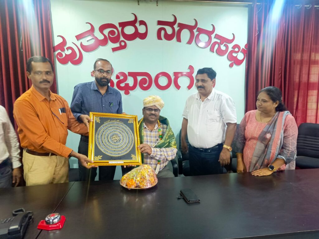 ಪುತ್ತೂರು ನಗರಸಭಾ ಸಭಾಂಗಣದಲ್ಲಿ ಸಹಾಯಕ ಕಾರ್ಯಪಾಲಕ ಅಭಿಯಂತರರಾದ ಶ್ರೀ ದುರ್ಗಾಪ್ರಸಾದ್, ಪೌರಸೇವಾ ನೌಕರರ ಸಂಘದ ಅಧ್ಯಕ್ಷರಾದ ಶ್ರೀ ಕರುಣಾಕರ್ ವಿ, ಪದಾಧಿಕಾರಿಗಳು ಮತ್ತು ಸಹಾಯಕ ಅಭಿಯಂತರರಾದ ಶ್ರೀ ಕೃಷ್ಣಮೂರ್ತಿ ರೆಡ್ಡಿ, ನಗರಸಭಾ ಸದಸ್ಯರಾದ ಶ್ರೀ ಯೂಸುಫ್ ಹಾಗೂ ಇನ್ನಿತರ ಅಧಿಕಾರಿ ಸಿಬ್ಬಂದಿಗಳು ಹಾಜರಿದ್ದರು. ಸದ್ರಿ ಸಂದರ್ಭ ಮಾನ್ಯ ಪೌರಾಯುಕ್ತರಿಗೆ ಸನ್ಮಾನ ಮಾಡಲಾಯಿತು. ಸಿಬ್ಬಂದಿಗಳು ಪೌರಾಯುಕ್ತರ ಕುರಿತು ಮಾತನಾಡಿ ಸದ್ರಿಯವರ ಗುಣಗಾನ ಮಾಡಿ ಶುಭಹಾರೈಸಿದರು ಹಾಗೂ ಪೌರಾಯುಕ್ತರು ತಮ್ಮ ಅನಿಸಿಕೆ ವ್ಯಕ್ತಪಡಿಸಿದರು. ಸಂಘದ ಖಜಾಂಜಿ ಆರೋಗ್ಯ ನಿರೀಕ್ಷಕರಾದ ರಾಮಚಂದ್ರ ಕೆ ವಂದನಾರ್ಪಣೆ ಮಾಡಿದರು.