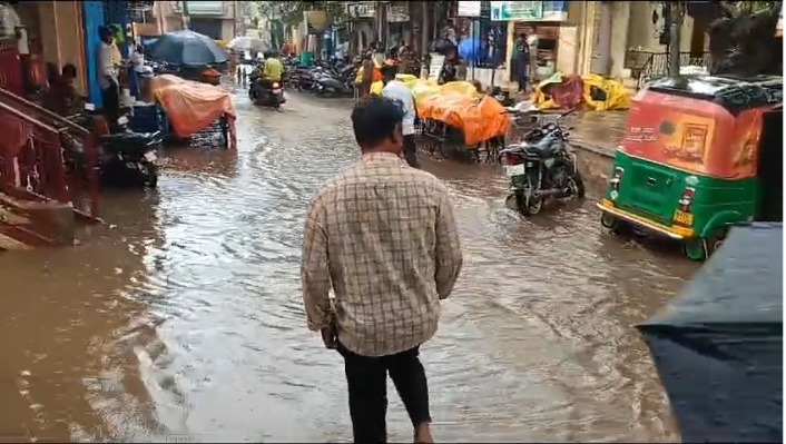 ನೀರು ತುಂಬಿ ಹರಿಯುತ್ತಿರುವುದು ಕಂಡು ಬಂತು. ಇಲ್ಲಿನ ತರಕಾರಿ ಮಾರುಕಟ್ಟೆಯಲ್ಲಿ ಚರಂಡಿ ನೀರು ಹೊಳೆಯಂತೆ ಹರಿದ ಪರಿಣಾಮ ತರಕಾರಿ, ಪುಟ್ ಬಾತ್ ವ್ಯಾಪರಸ್ಥರು ಪರದಾಡಿದರು. ಚರಂಡಿಗಳಲ್ಲಿ ಸರಿಯಾಗಿ ಸ್ವಚ್ಚತೆಯನ್ನು ಇರದ ಕಾರಣ ಕೊಳಚೆ ನೀರು ಸಂಪೂರ್ಣ ಮಾರುಕಟ್ಟೆ ತುಂಬ ತುಂಬಿಕೊAಡಿದ್ದು. ಇದರಿಂದ ನೆಲದ ಮೇಲೆ ಹಚ್ಚಿದ ತರಕಾರಿ, ಹಣ್ಣುಗಳು ಕೆಲವು ನೀರು ಪಾಲಾದವು. ಜನರು ತಮ್ಮ ಮನೆಗಳಲ್ಲಿ ನುಗ್ಗಿದ ಮಳೆ ನೀರು ಹೊರಹಾಕಲು ಹರಸಾಹಸಪಡುತ್ತಿದ್ದ ದೃಶ್ಯ ಕಂಡುಬಂತು.