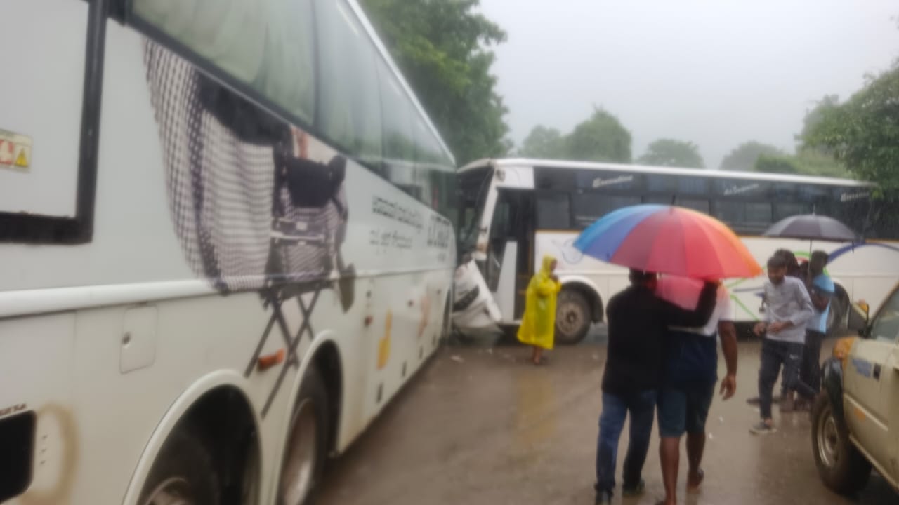ಘಟನೆಯಲ್ಲಿ ಐರಾವತ ಬಸ್ ಚಾಲಕ ಕಿರಣ್ ಮೇಸ್ತ ಎಂಬವರು ಗಾಯಗೊಂಡರು.