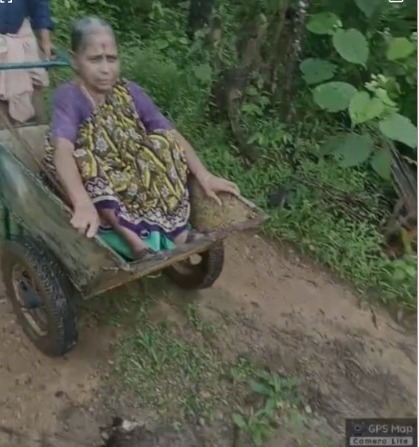 (ವೃದ್ಧೆಯನ್ನು ಕೈಗಾಡಿಯಲ್ಲಿ ಕುಳ್ಳಿರಿಸಿಕೊಂಡು ಬರುತ್ತಿರುವುದು: ಫೊಟೋ ಫೈಲ್ ನೇಮ್ ೧ಕೆಡಿಬಿ ವಿಆರ್)