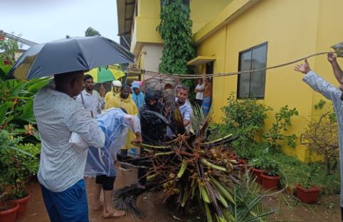 ಬಳಿಕ ಕೂಡಲೆ ಶಾಲಾ ಶಿಕ್ಷಕರು ಹಾಗೂ ಸಾರ್ವಜನಿಕರು ಗಮನಹರಿಸಿ ಮೆಸ್ಕಾಂ ಮಾಹಿತಿ ನೀಡಿ ಮರ ಹಾಗೂ ವಿದ್ಯುತ್ ತಂತಿಗಳನ್ನು ತೆರವು ಗೊಳಿಸಿದ್ದಾರೆ. ವಿದ್ಯುತ್ ತಂತಿ ಹಾಗೂ ಮರ ತೆರವು ಗೊಳಿಸಲು ಸಮಯ ಹಿಡಿದಿದ್ದು ಗೇಟ್ ನ ಒಳಗಿದ್ದ ಮಕ್ಕಳನ್ನು ಪಾಲಕರೊಂದಿಗೆ ಮನೆಗೆ ಕಳುಹಿಸಲಾಗಿದ್ದು, ಶಾಲಾ ಒಳಗಿದ್ದ ಮಕ್ಕಳಿಗೆ ಮಾತ್ರ ಪಾಠ ಮಾಡಲಾಗಿತ್ತು. ಮರ ತೆರವು ಗೊಳಿಸುವ ವೇಳೆ ಶಾಲಾ ಗೇಟ್ ಬಳಿ ಇದ್ದ ಇನ್ನೆರಡು ತೆಂಗಿನ ಮರಗಳನ್ನೂ ಮುನ್ನೆಚ್ಚರಿಕೆಯಾಗಿ ಕಡಿದು ತೆರವುಗೊಳಿಸಲಾಯಿತು.