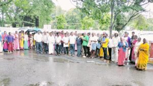 ಹಾಸನ: ಅರಸೀಕೆರೆ ತಾಲೂಕು ಜಾವಗಲ್ ಹೋಬಳಿ ಕಲ್ಯಾಡಿ ಗ್ರಾಮ ಪಂಚಾಯಿತಿ ವ್ಯಾಪ್ತಿಗೆ ಸೇರಿದ ಗೇರುಮರ ಗ್ರಾಮದಲ್ಲಿ ಅಕ್ರಮವಾಗಿ ಆರಂಭಿಸಲು ಮುಂದಾಗಿರುವ ಮದ್ಯದ ಅಂಗಡಿಗೆ ನಿಲ್ಲಿಸಬೇಕು ಎಂದು ಆಗ್ರಹಿಸಿ ಸುತ್ತಮುತ್ತಲ ಗ್ರಾಮಸ್ಥರು ಡಿಸಿ ಕಚೇರಿ ಎದುರು ಮಳೆ ನಡುವೆಯೂ ಪ್ರತಿಭಟನೆ ನಡೆಸಿದರು.