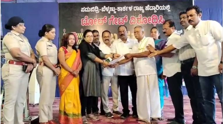 ಉಡುಪಿ: ಪಡುಬಿದ್ರಿ – ಕಾರ್ಕಳ ರಾಜ್ಯ ಹೆದ್ದಾರಿಯ ಕಂಚಿನಡ್ಕದಲ್ಲಿ ನಿರ್ಮಿಸಲು ಉದ್ದೇಶಿಸಿರುವ ಟೋಲ್ ಸಂಗ್ರಹಣಾ ಕೇಂದ್ರವನ್ನು ಶಾಶ್ವತವಾಗಿ ರದ್ದುಗೊಳಿಸಬೇಕು ಎಂದು ಒತ್ತಾಯಿಸಿ ಕಂಚಿನಡ್ಕದಲ್ಲಿ ಪ್ರತಿಭಟನೆ ನಡೆಸಲಾಯಿತು.