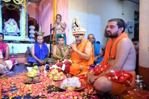 ಪುತ್ತಿಗೆ ಕಿರಿಯ ಶ್ರೀಪಾದರು ಮಾತನಾಡುತ್ತಾ, ಗುರುಗಳು 63ರಂತೆ ಇಲ್ಲದೆ 36 ವರ್ಷದಂತೆ ಯುವ ಉತ್ಸಾಹದಲ್ಲಿ ಕರ್ತವ್ಯಗಳನ್ನು ನಡೆಸುತ್ತಿದ್ದು ಅವರು ಹಾಕಿಕೊಟ್ಟ ಮಾರ್ಗದಲ್ಲಿ ಅವರ ಅನುಗ್ರಹದಿಂದ ನಾವು ಸಾಧನೆ ಮಾಡುವಂತಾಗಲಿ ಎಂದು ಪ್ರಾರ್ಥಿಸಿದರು. ಗುರುಗಳಿಗೆ ಪುಷ್ಪದ ಕಿರೀಟವನ್ನು ತೊಡಿಸಿ ನಮನ ಸಲ್ಲಿಸಿದರು.ಈ ಸಂದರ್ಭದಲ್ಲಿ ಶ್ರೀಪಾದರ ಎರಡು ಕೃತಿಗಳನ್ನು ಅದಮಾರು ಹಿರಿಯ ಶ್ರೀಪಾದರು ಮತ್ತು ಭಂಡಾರಕೇರಿ ಶ್ರೀಪಾದರು ಬಿಡುಗಡೆಗೊಳಿಸಿದರು. ಕೃತಿಸಂಗ್ರಹವನ್ನು ಮಾಡಿ ಪ್ರಕಟಿಸಲು ಶ್ರಮಿಸಿದ ಓಂಪ್ರಕಾಶ ಭಟ್ಟರನ್ನು ಶ್ರೀಪಾದರು ಗೌರವಿಸಿದರು. ಮಠದ ವಿದ್ವಾಂಸರಾದ ವಿದ್ವಾನ್ ಬಿ. ಗೋಪಾಲಾಚಾರ್ಯ ಕಾರ್ಯಕ್ರಮ ನಿರೂಪಿಸಿ, ವಂದಿಸಿದರು.