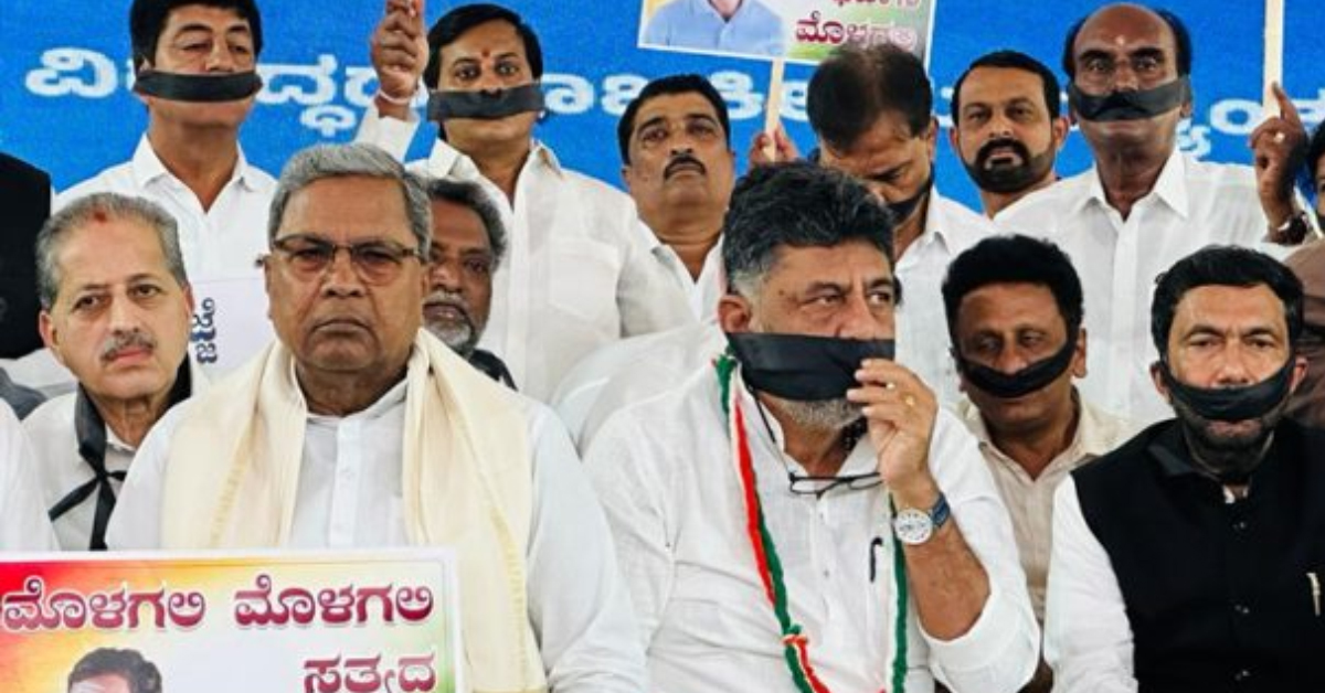 ಬಾಯಿಗೆ ಬಟ್ಟೆ ಕಟ್ಟಿ ಫ್ರೀಡಂ ಪಾರ್ಕ್ ನಲ್ಲಿ ಕೆಪಿಸಿಸಿ ಮೌನ ಪ್ರತಿಭಟನೆ