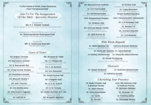 ಕಾರ್ಯಕ್ರಮದಲ್ಲಿ ಮುಖ್ಯ ಅತಿಥಿಗಳಾಗಿ ಸಂಸದ ಬ್ರಿಜೇಶ್ ಚೌಟ, ಕಾಸರಗೋಡು ಸಂಸದ ರಾಜಮೋಹನ್ ಉನ್ನಿತ್ತಾನ್, ಹಾಸನ ಸಂಸದ ಶ್ರೇಯಸ್ ಪಾಟೀಲ್, ಹೊಳೆನರಸೀಪುರ ಶಾಸಕ ಎಚ್. ಡಿ ರೇವಣ್ಣ, ಪುತ್ತೂರು ಶಾಸಕ ಅಶೋಕ್ ಕುಮಾರ್ ರೈ , ಬಂಟ್ವಾಳ ಶಾಸಕ ರಾಜೇಶ್ ನಾಯ್ಕ್, ಮಂಜೇಶ್ವರ ಶಾಸಕ ಎ.ಕೆ.ಎಂ.ಅಶ್ರಫ್ , ವಿಧಾನ ಪರಿಷತ್ ಸದಸ್ಯ ಐವನ್ ಡಿಸೋಜ, ವಿಧಾನ ಪರಿಷತ್ ಮಾಜಿ ಸದಸ್ಯ ಬಿ.ಎಂ ಫಾರೂಕ್ , ಕಾಸರಗೋಡು ಶಾಸಕ ಎನ್.ಎ ನೆಲ್ಲಿಕುನ್ನು, ಕರ್ನಾಟಕ ರಾಜ್ಯ ಅಲೈಡ್ ಹೆಲ್ತ್ಕೇರ್ ಕೌನ್ಸಿಲ್ ಚೆಯರ್ಮ್ಯಾನ್ ಯು ಟಿ ಇಫ್ತಿಕಾರ್ ಅಲಿ , ಮಾಜಿ ಸಚಿವರಾದ ಬಿ. ರಮಾನಾಥ ರೈ ಮತ್ತು ವಿನಯಕುಮಾರ್ ಸೊರಕೆ ಮಾಜಿ ಕೇಂದ್ರ ಸಚಿವ ಸಿ.ಎಂ ಇಬ್ರಾಹೀಂ , ವಿವಿಧ ಕ್ಷೇತ್ರಗಳ ಗಣ್ಯರು, ಖ್ಯಾತ ವೈದ್ಯರು ಕಾರ್ಯಕ್ರಮದಲ್ಲಿ ಭಾಗವಹಿಸಲಿದ್ದಾರೆ.