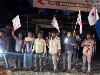 ಉಳ್ಳಾಲ: ತೊಕ್ಕೊಟ್ಟು ಚೆಂಬುಗುಡ್ಡೆ ರಸ್ತೆಯಲ್ಲಿ ನಡೆದ ಅಪಘಾತದಲ್ಲಿ ಮಹಿಳೆಯು ದಾರುಣವಾಗಿ ಮೃತ್ಯುವಾದ ಹಿನ್ನೆಲೆಯಲ್ಲಿ ಡಿವೈಎಫ್ಐ ಉಳ್ಳಾಲ ತಾಲೂಕು ಸಮಿತಿ ನೇತೃತ್ವದಲ್ಲಿ ಚೆಂಬುಗುಡ್ಡೆಯಲ್ಲಿ ಪ್ರತಿಭಟನೆ ನಡೆಯಿತು. ಪ್ರತಿಭಟನೆಯನ್ನು ಉದ್ದೇಶಿಸಿ ಮಾತನಾಡಿದ ಡಿವೈಎಫ್ಐ ಉಳ್ಳಾಲ ತಾಲೂಕು ಸಮಿತಿ ಅಧ್ಯಕ್ಷ ನ್ಯಾಯವಾದಿ ನಿತಿನ್ ಕುತ್ತಾರ್ ಇಲ್ಲಿನ ಶಾಸಕರಾದ ಯು.ಟಿ.ಖಾದರ್ ಈ ರಸ್ತೆಯನ್ನು ಟೋಲ್ ಮುಕ್ತ ರಸ್ತೆ ಎಂದು ಜಂಭ ಕೊಚ್ಚಿಕೊಳ್ಳುತ್ತಾರೆ,ಇವತ್ತು ಇಲ್ಲಿ ಅಪಘಾತ ಸಂಭವಿಸಿ ಒಂದು ಮಹಿಳೆಯ ಪ್ರಾಣವೇ ಹೋಗಿದೆ.ಮೂಲಭೂತ ಸೌಕರ್ಯ ಒದಗಿಸಲು ಸಾಧ್ಯವಾಗದ ಇವರು ಯಾವ ಸೀಮೆಯ ಅಭಿವೃದ್ದಿಯ ಹರಿಕಾರ ಎಂದು ಹರಿಹಾಯ್ದರು.ಇನ್ನೊಂದು ವಾರದಲ್ಲಿ ಈ ರಸ್ತೆಯನ್ನು ಸರಿಪಡಿಸದೇ ಇದ್ದಲ್ಲಿ ಶಾಸಕರ ಕಛೇರಿಗೆ ತೆರಳಿ ಕಪ್ಪು ಬಾವುಟ ಹಿಡಿಯುತ್ತೇವೆ ಎಂದು ಎಚ್ಚರಿಕೆ ನೀಡಿದರು.