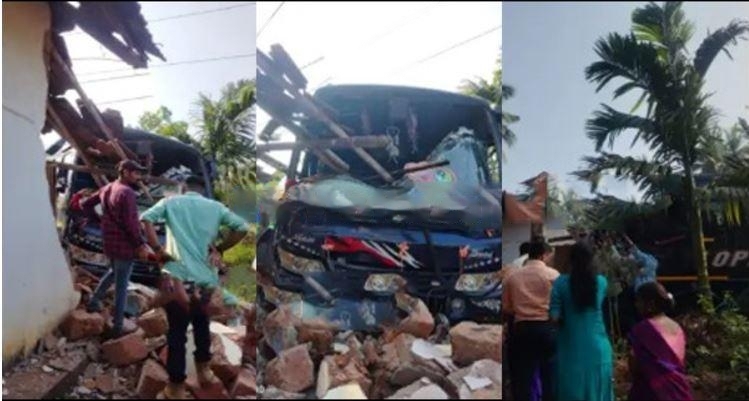 ಪುತ್ತೂರು: ಶಾಲಾ ವಾಹನಕ್ಕೆ ಡಿಕ್ಕಿ ಹೊಡೆಯುದನ್ನು ತಪ್ಪಿಸಲು ಹೋಗಿ ಮದುವೆಗೆ ತೆರಳುತ್ತಿದ್ದ ಬಸ್ಸೊಂದು ರಸ್ತೆ ಅಂಚಿನಲ್ಲಿದ್ದ ಮನೆಗೆ ನುಗ್ಗಿದ ಘಟನೆ ಕಾವು ಸಮೀಪದ ಅಮ್ಚಿನಡ್ಕ ಎಂಬಲ್ಲಿ ನಡೆದಿದೆ. ಘಟನೆಯ ಪರಿಣಾಮ ಬಸ್ನಲ್ಲಿದ್ದವರಿಗೆ ಹಾಗೂ ಮನೆಯಲ್ಲಿದ್ದವರಿಗೆ ಯಾವುದೇ ಅಪಾಯ ಸಂಭವಿಸಿಲ್ಲ. ಮನೆ ಗೋಡೆ ಸಂಪೂರ್ಣ ಕುಸಿದಿದೆ. ಘಟನಾ ಸ್ಥಳಕ್ಕೆ ಪೊಲೀಸರು ತೆರಳಿ ಪರಿಶೀಲನೆ ನಡೆಸುತ್ತಿದ್ದಾರೆ. ಅಪಘಾತವು ಸುಳ್ಯ ಪುತ್ತೂರು ರಸ್ತೆಯ ಅಮ್ಚಿನಡ್ಕ ಬಳಿ ಸಂಭವಿಸಿದೆ. ಮದುವೆಗೆ ತೆರಳುವ ಪ್ರಯಾಣಿಕರನ್ನು ಕೊಂಡು ಹೋಗುತ್ತಿದ್ದ ಬಸ್ ಪುತ್ತೂರಿನಿಂದ ಸುಳ್ಯದ ಕಡೆಗೆ ಹೋಗುತ್ತಿತ್ತು.