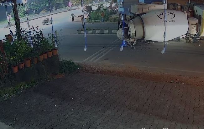 ಸಿಮೆಂಟ್ ರೆಡಿಮಿಕ್ಸ್ ಲಾರಿ ಅಂಬಾಗಿಲಿನಿಂದ ಮಣಿಪಾಲದ ಕಡೆಗೆ ತೆರಳುತ್ತಿದ್ದು, ಪೆರಂಪಳ್ಳಿಗೆ ತೆರಳುವ ಕ್ರಾಸ್ ನಲ್ಲಿ ಚಾಲಕನ ನಿಯಂತ್ರಣ ತಪ್ಪಿ ಡಿವೈಡರ್ ಮೇಲೆ ಪಲ್ಟಿಯಾಗಿ ಬಿದ್ದಿದೆ. ಘಟನೆಯ ದೃಶ್ಯ ಸಿಸಿಟಿವಿಯಲ್ಲಿ ಸೆರೆಯಾಗಿದೆ.