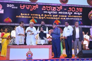 ಕಾರ್ಯಕ್ರಮದಲ್ಲಿ ಸಾನಿಧ್ಯವಿದ್ದ ಮೂಡುಬಿದಿರೆ ಜೈನ ಮಠದ ಭಟ್ಟಾರಕ ಚಾರುಕೀರ್ತಿ ಪಂಡಿತಾಚಾರ್ಯವರ್ಯ, ಗುರುಪುರ ವಜ್ರದೇಹಿ ಮಠದ ರಾಜಶೇಖರಾನಂದ ಸ್ವಾಮೀಜಿ, ಕೊಂಡೆವೂರು ಯೋಗಾನಂದ ಸ್ವಾಮೀಜಿ, ಕೊಂಡವೂರು, ಮಾಣಿಲ ಮೋಹನದಾಸ ಸ್ವಾಮೀಜಿ ಹಾಗೂ ಕಟೀಲು ದೇವಳದ ಆನುವಂಶಿಕ ಮೊಕ್ತೇಸರ ಲಕ್ಷ್ಮೀ ನಾರಾಯಣ ಅಸ್ರಣ್ಣ ಅವರು ವೇದಿಕೆಯ ಬಲಭಾಗದಲ್ಲಿದ್ದ ರಥದಲ್ಲಿ ದೇವರ ಪ್ರತಿಷ್ಠಾಪನೆ ಮಾಡಿ ಭವ್ಯ ಸಾಂಸ್ಕೃತಿಕ ಮೆರವಣಿಗೆಗೆ ಚಾಲನೆ ನೀಡಿದರು.