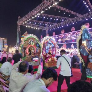 ಹರಿದ್ವಾರದಿಂದ ಬಂದ ವಿಪುಲ್ ಶರ್ಮಾ ನೇತೃತ್ವದ ಗಂಗಾರತಿ ತಂಡವು ಮಂತ್ರ ಘೋಷಗಳೊಂದಿಗೆ ಆರತಿ ಬೆಳಗಿದಾಗ ಶ್ರದ್ಧೆ -ಭಕ್ತಿಯ ಪ್ರಜ್ವಲನವಾಯಿತು. ಭಕ್ತರು ಜಯಕಾರ ಹಾಕಿದರು. ಭಕ್ತರು ಭಾವಪರವಶರಾದರು. ಆಗಸದಲಿ ಮೂಡಿದ ಪಟಾಕಿಯ ಸಿಂಚನ- ಸಿಡಿಮದ್ದು ಜಾತ್ರೆಯನ್ನು ನೆನಪಿಸಿತು.