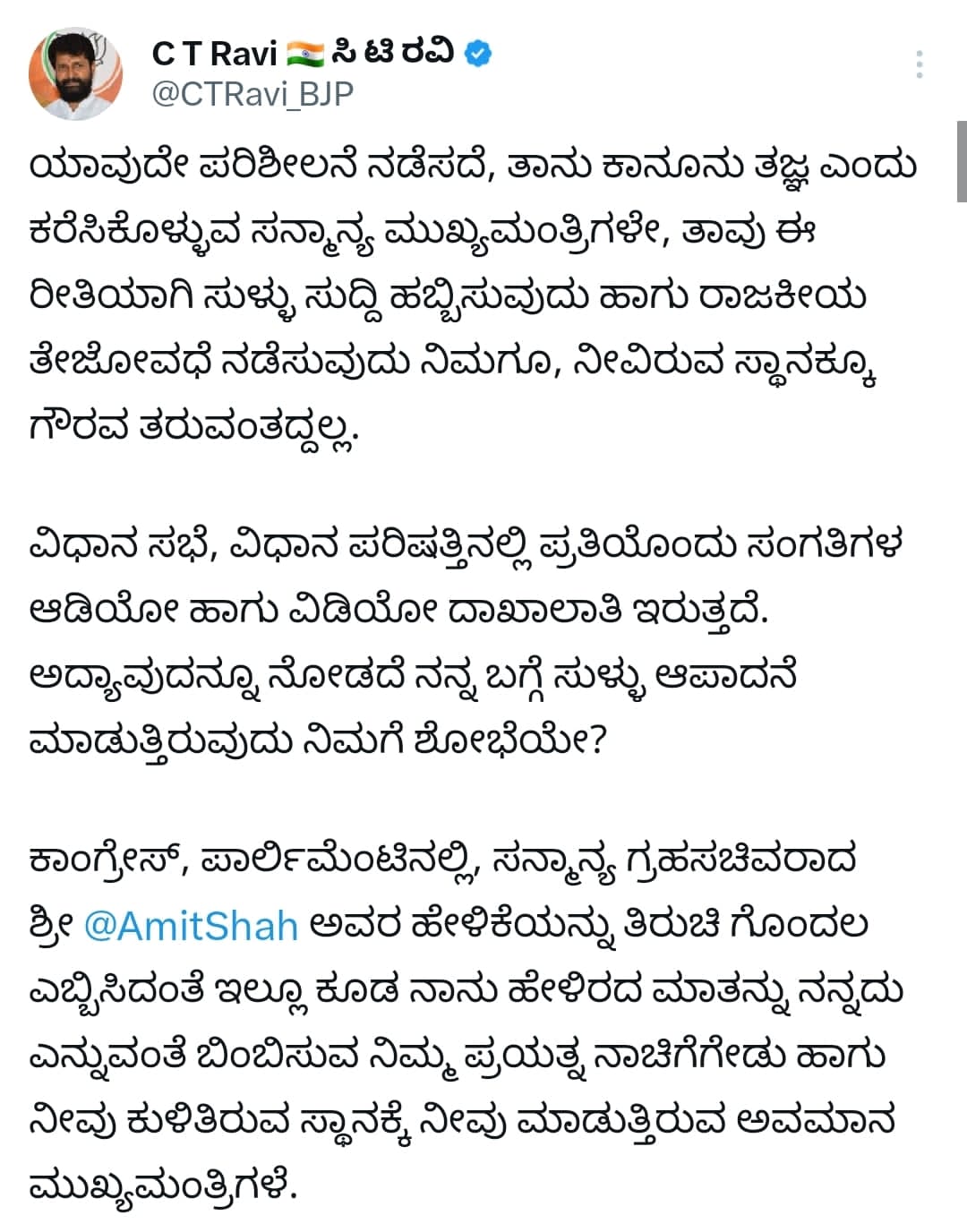 ಅವರು ಇಂದು ಸಿ.ಟಿ.ರವಿಯವರನ್ನು ಬೆಂಬಲಿಸಿ ಬಿಜೆಪಿ ಪ್ರತಿಭಟನೆ ನಡೆಸುತ್ತಿರುವುದರ ಬಗ್ಗೆ ಮಾಧ್ಯಮದವರ ಪ್ರಶ್ನೆಗೆ ಪ್ರತಿಕ್ರಿಯೆ ನೀಡಿದರು.