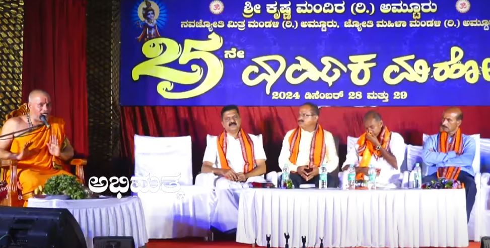 ಶ್ರೀ ಕೃಷ್ಣ ಮಂದಿರ ಅಮ್ಟೂರು ಇದರ 25ನೇ ವರ್ಷದ ವಾರ್ಷಿಕ ಮಹೋತ್ಸವದಲ್ಲಿ ಭಾಗವಹಿಸಿ ಅವರು ಮಾತನಾಡಿದರು. ಹಿಂದೂ ಸಮಾಜ ಅಸಂಘಟಿತ ವಾಗಿದ್ದಾಗ ಈ ದೇಶಕ್ಕೆ ಮುಸಲ್ಮಾನರ ಆಕ್ರಮಣವಾಗಿತ್ತು. ಇದು ಶ್ರೀರಾಮ, ಶ್ರೀ ಕೃಷ್ಣರ ಭೂಮಿ ಹೊರತು ಇದು ಬೇರ್ಯಾರಿಗೂ ಸೇರಿದ್ದಲ್ಲ. ಈ ಬಗ್ಗೆ ಹಿಂದೂ ಸಮಾಜ ಜಾಗೃತವಾಗಿರಬೇಕು ಎಂದು ತಿಳಿಸಿದರು.