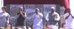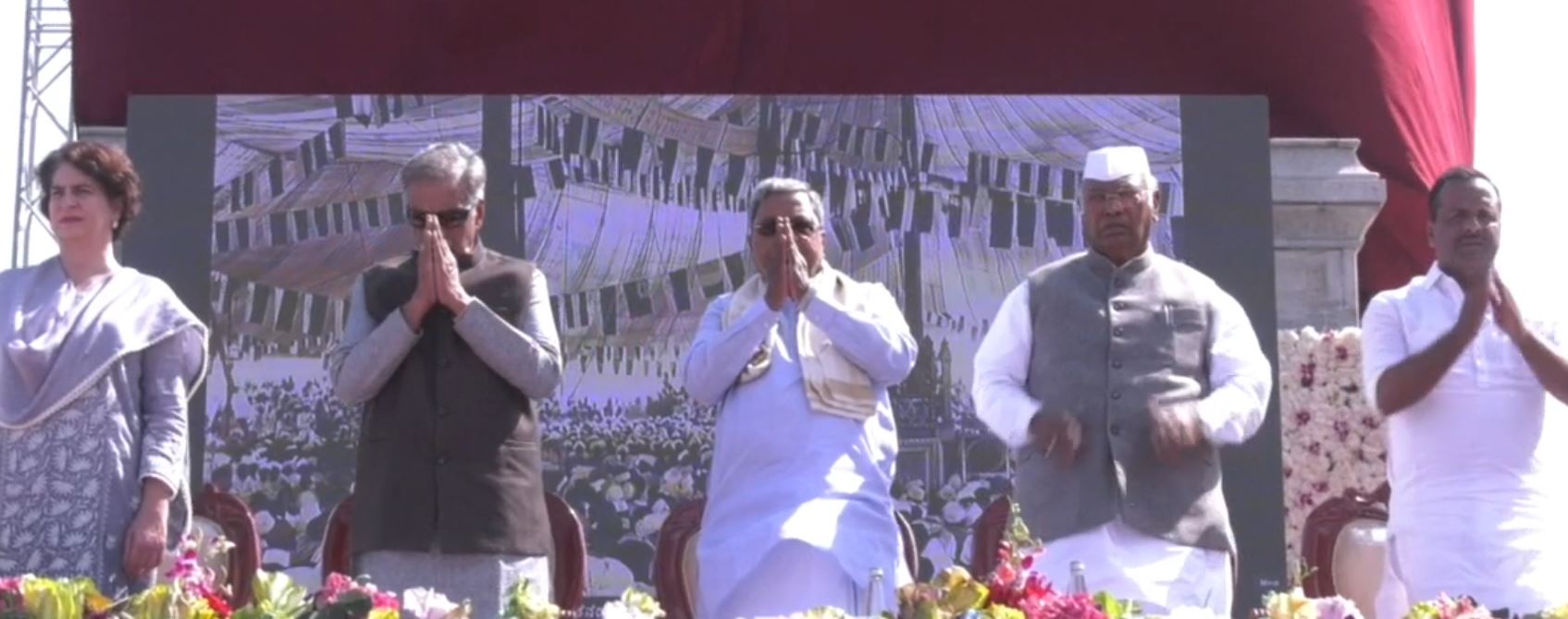 ವಿಧಾನ ಪರಿಷತ್ ಸಭಾಪತಿ ಬಸವರಾಜ ಹೊರಟ್ಟಿ,ವಿಧಾನಸಭಾಧ್ಯಕ್ಷ ಯು.ಟಿ.ಖಾದರ್,ಉಪಮುಖ್ಯಮಂತ್ರಿ ಡಿ.ಕೆ.ಶಿವಕುಮಾರ್, ಸಂಸದರಾದ ಪ್ರಿಯಾಂಕಾ ಗಾಂಧಿ,ಕೆ.ಸಿ.ವೇಣುಗೋಪಾಲ,ರಣದೀಪ್ಸಿಂಗ್ ಸುರ್ಜೇವಾಲಾ,ವಿಧಾನಸಭೆ ಉಪಸಭಾಧ್ಯಕ್ಷ ರುದ್ರಪ್ಪ ಲಮಾಣಿ,ಸಚಿವರಾದ ಎಚ್.ಕೆ.ಪಾಟೀಲ,ಡಾ.ಜಿ.ಪರಮೇಶ್ವರ, ಸತೀಶ ಜಾರಕಿಹೊಳಿ ಮತ್ತಿತರ ಗಣ್ಯರು ವೇದಿಕೆಯಲ್ಲಿದ್ದರು.