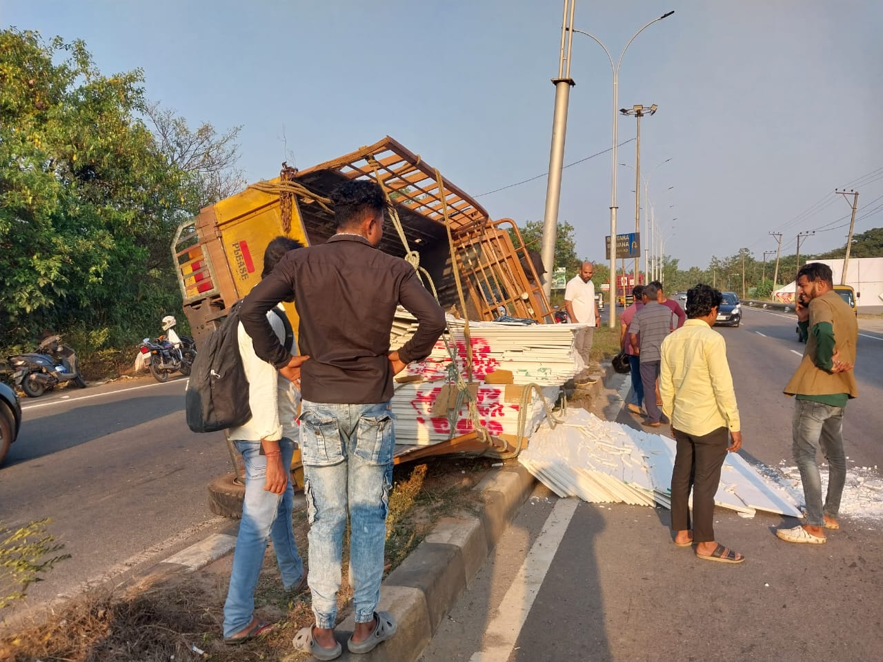 ರಾಮಲ್ ಕಟ್ಟೆ ಎಂಬಲ್ಲಿ ಮಾರ್ಬಲ್ ಲೋಡ್ ಲಾರಿಯೊಂದು ತಾಂತ್ರಿಕ ದೋಷದಿಂದ ರಸ್ತೆಯ ವಿಭಾಜಕ್ಕೆ ಡಿಕ್ಕಿ ಹೊಡೆದು ಪಲ್ಟಿ..!!!