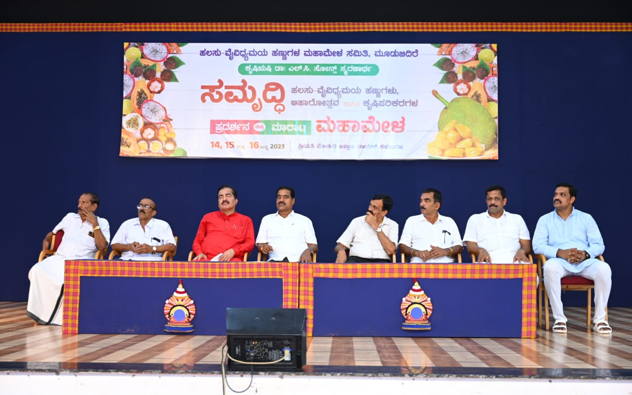 ಮೂಡುಬಿದಿರೆಯ ಆಳ್ವಾಸ್ ಕಾಲೇಜಿನಲ್ಲಿ ಹಲಸು – ವೈವಿದ್ಯಮಯ ಹಣ್ಣುಗಳ ಮಹಾಮೇಳ ಸಮಿತಿ, ಮೂಡುಬಿದಿರೆ ಇದರ ವತಿಯಿಂದ ಡಾ|ಎಲ್. ಸಿ ಸೋನ್ಸ್ ಸ್ಮರಣಾರ್ಥ ಆಯೋಜಿಸಲಾಗಿರುವ “ಸಮೃದ್ಧಿ” ಹಲಸು ಮತ್ತು ವೈವಿದ್ಯಮಯ ಹಣ್ಣುಗಳ ಆಹಾರೋತ್ಸವ ಮತ್ತು ಕೃಷಿಪರಿಕರಗಳ ಪ್ರದರ್ಶನ ಮತ್ತು ಮಾರಾಟ ಮಹಾಮೇಳದ ಸಮಾರೋಪ ಸಮಾರಂಭದಲ್ಲಿ ಮಾನ್ಯ ಶಾಸಕರಾದ ಶ್ರೀ ಉಮಾನಾಥ್ ಕೋಟ್ಯಾನ್ ಅವರು ಭಾಗವಹಿಸಿದರು.