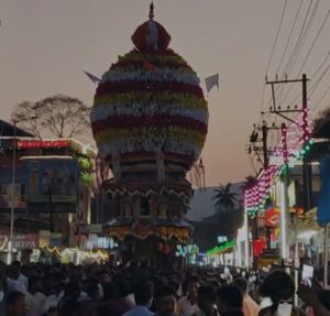 ಸಂಜೆ ನಡೆದ ವೈಭವದ ರಥೋತ್ಸವದಲ್ಲಿ ಚೆಂಡೆ ವಾದನ, ತಟ್ಟಿರಾಯ ಸೇರಿದಂತೆ ವಿವಿಧ ಸಾಂಸ್ಕೃತಿಕ ತಂಡಗಳು ಭಾಗವಹಿಸಿದ್ದವು. ದೇವಸ್ಥಾನದ ಹೊರ ಹಾಗೂ ಒಳಾವರಣವನ್ನು ಹೂವು ಹಾಗೂ ಹಣ್ಣು ಗಳಿಂದ ವಿಶೇಷವಾಗಿ ಅಲಂಕರಿಸಲಾಗಿತ್ತು.