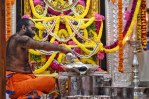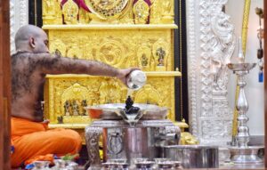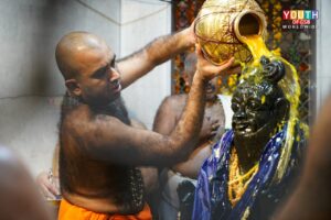 ಬೆಳಿಗ್ಗೆ 1008 ವಿಶೇಷ ಪವಮಾನಾಭಿಷೇಕ ಸೇವೆ ನಡೆಯಿತು. ಭಾರತದ ವಿವಿಧ ದಿಕ್ಕುಗಳಲ್ಲಿ ಹರಿಯುತ್ತಿರುವ ಪವಿತ್ರ ನದಿಗಳ ತೀರ್ಥವನ್ನು ಸಂಗ್ರಹಿಸಿ ಹರಿದ್ವಾರದ ವ್ಯಾಸಾಶ್ರಮಕ್ಕೆ ತರಲಾಗಿತ್ತು. ಇದು ಚಾರಿತ್ರಿಕವಾಗಿರುವ ದಾಖಲೆಯಾಗಿದೆ. ಎಲ್ಲಾ ಪವಿತ್ರ ನದಿಗಳ ತೀರ್ಥವನ್ನು ಸ್ವಾಮೀಜಿಯವರ ವೃಂದಾವನದಲ್ಲಿ ಅಭಿಷೇಕ ಮಾಡಲಾಯಿತು. ಇನ್ನು 1008 ಬೆಳ್ಳಿ ನಾಣ್ಯಗಳನ್ನು ಸೇವಾದಾರರಿಗೆ ವಿತರಿಸಲಾಯಿತು. ಆ ಬಳಿಕ ಸ್ವರ್ಣ ಪುಷ್ಪಾರ್ಚನಾ ಕಾರ್ಯಕ್ರಮ ನಡೆಯಿತು. ಮೊದಲಿಗೆ ವೃಂದಾವನದಲ್ಲಿರುವ ಹನುಮಂತ ದೇವರ ಪಾದಗಳಿಗೆ ಸ್ವರ್ಣ ಪುಷ್ಪಾಚನೆ ನಡೆಸಲಾಯಿತು. ಬಳಿಕ ಗುರುಪಾದುಕೆಗೆ ಸ್ವರ್ಣ ಪುಷ್ಪಾಚನೆ ನಡೆಯಿತು. ಆ ಸ್ವರ್ಣ ಪುಷ್ಪಗಳನ್ನು ಪ್ರಸಾದ ರೂಪದಲ್ಲಿ ಭಕ್ತರಿಗೆ ವಿತರಿಸಲಾಯಿತು.