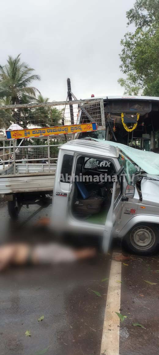 ಕಾರ್ಕಳದಿಂದ ಉಡುಪಿಗೆ ಹೋಗುತ್ತಿರುವ ಪಿಕಪ್ ಗೆ ಉಡುಪಿಯಿಂದ ಕಾರ್ಕಳ ಕಡೆ ಹೋಗುತ್ತಿದ್ದ ಖಾಸಗಿ ಬಸ್ ಡಿಕ್ಕಿ ಹೊಡೆದಿದೆ. ಡಿಕ್ಕಿಯ ರಭಸಕ್ಕೆ ಪಿಕಪ್ ವಾಹನ ಇಬ್ಭಾಗವಾಗಿದೆ.