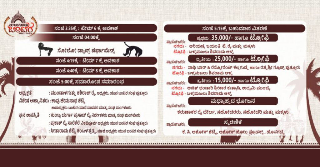 ಬಂಟರ ಯಾನೆ ನಾಡವರ ಮಾತೃ ಸಂಘ ಮಂಗಳೂರು (ರಿ) ಪುತ್ತೂರು ತಾಲೂಕು ಸಮಿತಿ ಮಾರ್ಗದರ್ಶನದಲ್ಲಿ, ಪುತ್ತೂರು ತಾಲೂಕು ಬಂಟರ ಸಂಘ, ಮಹಿಳಾ ಬಂಟರ ಸಂಘ ಮತ್ತು ವಿದ್ಯಾರ್ಥಿ ಬಂಟರ ಸಂಘದ ಸಹಕರದೊಂದಿಗೆ ಈ ಕಾರ್ಯಕ್ರಮ ನಡೀತದೆ.