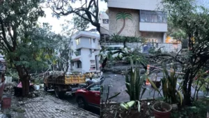 ಇನ್ನು ಬಿಬಿಎಂಪಿಯ 8 ವಲಯದಲ್ಲಿ 35ಕ್ಕೂ ಹೆಚ್ಚು ಮರಗಳು ನೆಲಕ್ಕುರುಳಿವೆ. 120ಕ್ಕೂ ಹೆಚ್ಚು ಮರದ ಕೊಂಬೆಗಳು ಮುರಿದು ಬಿದ್ದಿವೆ. ಬೆಂಗಳೂರಿನ ಕಲ್ಯಾಣನಗರದಲ್ಲಿ ಪಾರ್ಕಿಂಗ್ ಮಾಡಿದ್ದ ಕಾರಿನ ಮೇಲೆ ಬೃಹತ್ ಮರಬೊಂದು ಉರುಳಿ ಬಿದ್ದಿದೆ. ಇದರಿಂದ ಕಾರಿಗೆ ಹಾನಿಯಾಗಿದ್ದು ಮಾಲೀಕ ಬೇಸರಗೊಂಡಿದ್ದಾರೆ. ನಿನ್ನೆ ಸುರಿದ ಭಾರೀ ಮಳೆಗೆ ಹೆಚ್ಬಿಆರ್ ಲೇಔಟ್ನ ರಸ್ತೆಯೊಂದು ಕರೆಯಂತೆ ಆಗಿದೆ. ರಸ್ತೆ ತಗ್ಗು ಇದ್ದಿದ್ದರಿಂದ ಮಳೆ ನೀರು ಶೇಖರಣೆ ಆಗಿದೆ. ಧಾರಾಕಾರ ಮಳೆಗೆ ರಸ್ತೆ ಬದಿ ಇದ್ದ ಬೃಹತ್ ಮರವೊಂದು ವಾಲಿದೆ. ಈ ದೃಶ್ಯವು ಬೆಂಗಳೂರಿನ ರೇಸ್ ಕೋರ್ಸ್ಬಳಿ ಕಂಡು ಬಂದಿದೆ. ಬೆಂಗಳೂರಿನಲ್ಲಿ ಮಳೆ ಜೋರಾಗಿ ಬಂದಿದ್ದರಿAದ ಹಲವೆಡೆ ಮರಗಳು ಧರೆಗುರುಳಿವೆ. ಇದು ಕಮ್ಮನಹಳ್ಳಿ ಮ್ಯಾನ್ ರಸ್ತೆಯಲ್ಲಿ ಕಂಡು ಬಂದ ದೃಶ್ಯಗಳು