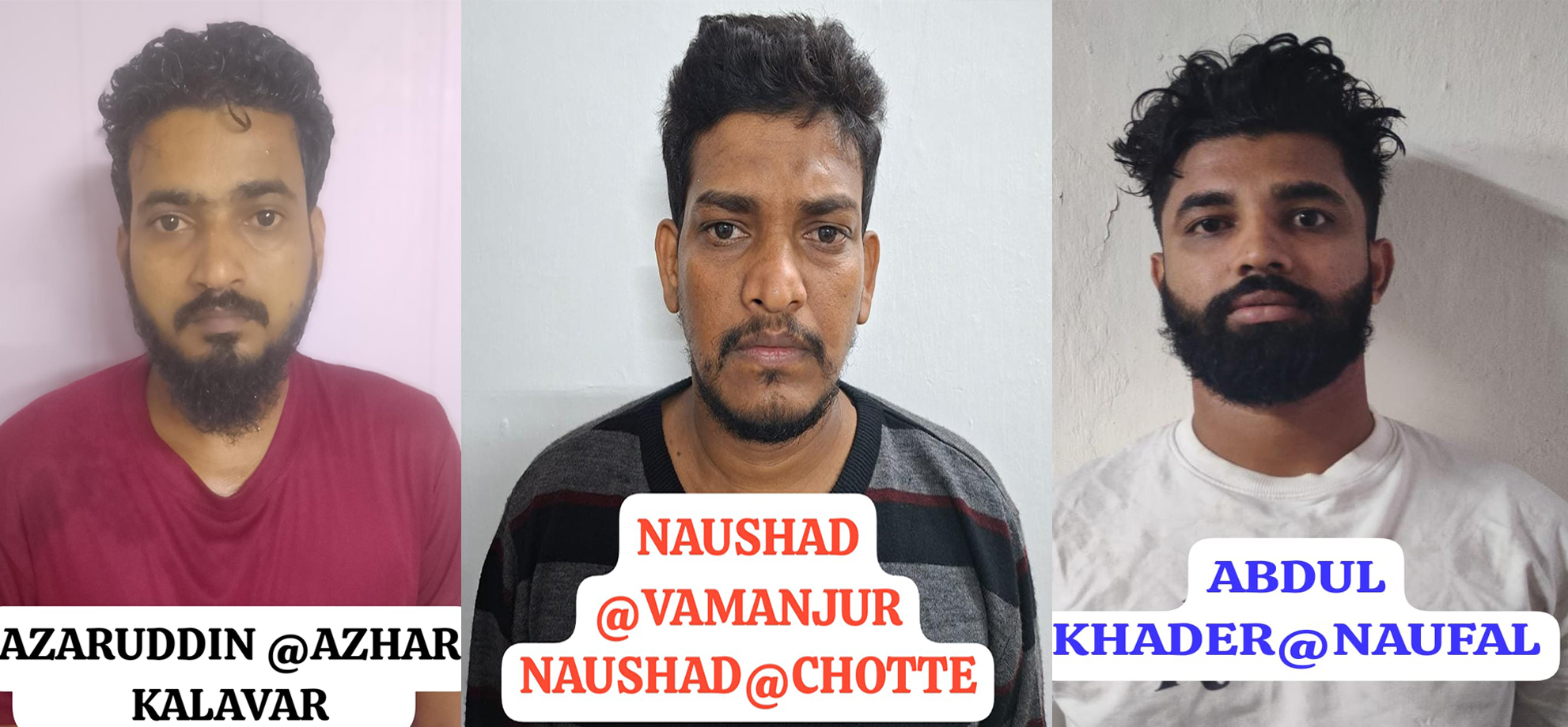 ಬಂಧಿತರನ್ನು ಕಳವಾರು ಗ್ರಾಮದ ಅಝರುದ್ದೀನ್ ಯಾನೆ ಅಝರ್ ಯಾನೆ ಅಜ್ಜು , ಬಜ್ಪೆಯಲ್ಲಿ ವಾಸವಾಗಿರುವ ಅಬ್ದುಲ್ ಖಾದರ್ ಯಾನೆ ನೌಫಲ್, ಮೂಲತಃ ಫರಂಗಿಪೇಟೆ ಕುಂಪನಮಜಲಿನ ಪ್ರಸಕ್ತ ಹಾಸನ ಜಿಲ್ಲೆ ಕೆ.ಆರ್.ಪುರಂ ನಿವಾಸಿ ನೌಷಾದ್ ಯಾನೆ ವಾಮಂಜೂರು ನೌಷಾದ್ ಎಂದು ಗುರುತಿಸಲಾಗಿದೆ.