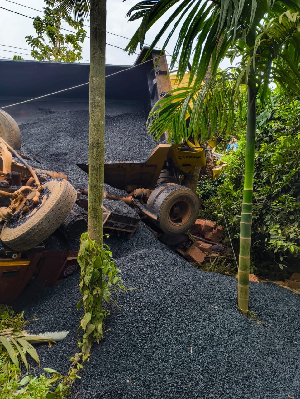 ಸಜೀಪನಡುವಿಲ್ಲಿ ರಸ್ತೆಗೆ ಡಾಮರು ಹಾಕುವ ಉದ್ದೇಶದಿಂದ ಡಾಮರು ಸಾಗಿಸುವ ವೇಳೆ ಘಟನೆ ನಡೆದಿದೆ. ಅಪಘಾತಕ್ಕೆ ಚಾಲಕನ ನಿರ್ಲಕ್ಷ್ಯತನದ ಚಾಲನೆ ಹಾಗೂ ಅಜಾಗರೂಕತೆಯೆ ಕಾರಣ ಎನ್ನಲಾಗಿದೆ. ಸ್ಥಳಕ್ಕೆ ಮೆಲ್ಕಾರ್ ಟ್ರಾಫಿಕ್ ಎಸ್.ಐ.ಸುತೇಶ್ ಭೇಟಿ ನೀಡಿ ಪ್ರಕರಣ ದಾಖಲಿಸಿಕೊಂಡಿದ್ದಾರೆ.