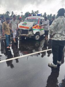 ಅಂಬ್ಯುಲೆನ್ಸ್ ಹಾಗೂ ಕಾರು ಮುಖಾಮುಖಿಯಾದ ಪರಿಣಾಮ ಭೀಕರ ಅಪಘಾತ ಸಂಭವಿಸಿದೆ.