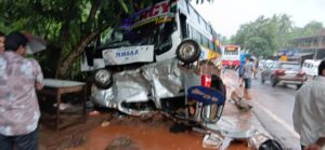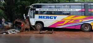 ಪುತ್ತೂರಿನ ಮುರ ಸಮೀಪ ಬೆಳಗಿನಜಾವ ಕಾರು ಮತ್ತು ಖಾಸಗಿ ಬಸ್ ನಡುವೆ ನಡೆದ ಅಪಘಾತದಲ್ಲಿ ಮೂವರು ಗಂಭೀರ ಗಾಯಗೊಂಡ ಘಟನೆ ಮೇ 27 ರಂದು ನಡೆದಿದೆ.