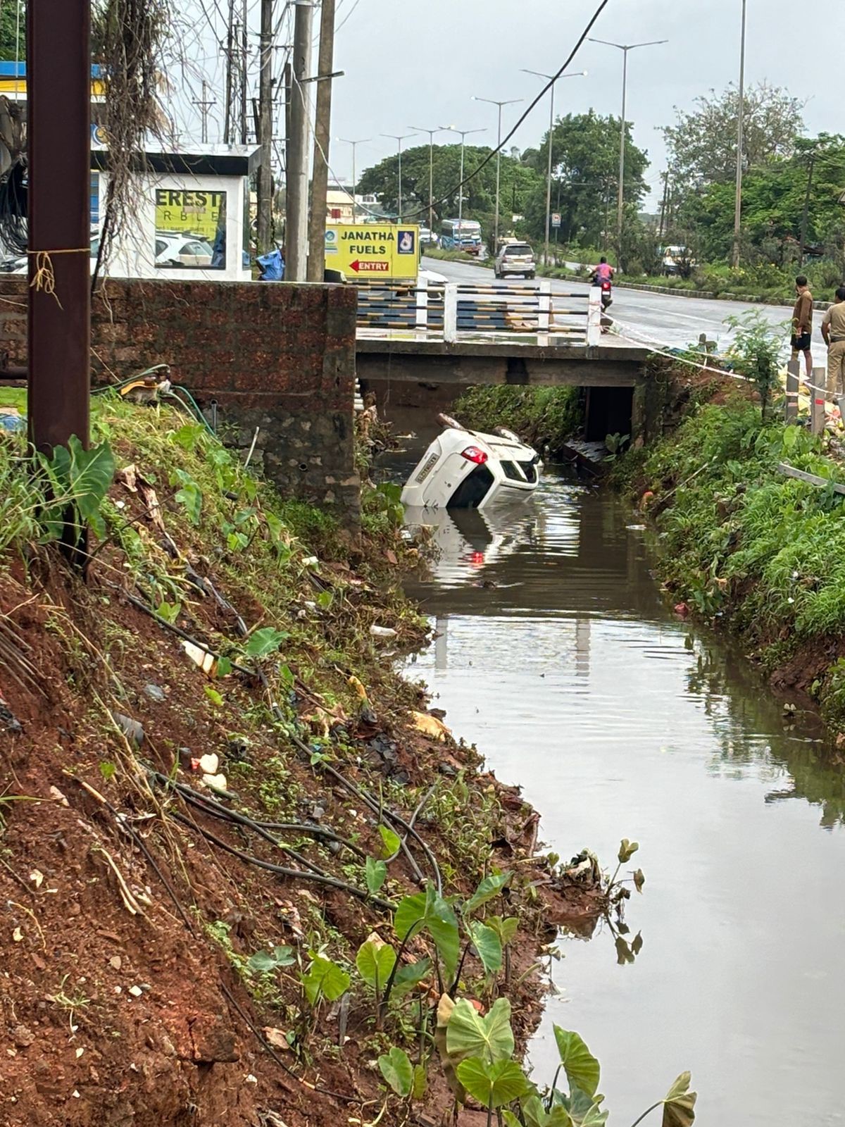 ರಾಷ್ಟ್ರೀಯ ಹೆದ್ದಾರಿ 66ರ ಕೋಡಿಕಲ್ ಕ್ರಾಸ್ ಬಳಿಯಿರುವ ರಾಜಕಾಲುವೆಗೆ ಸಂಚಾರದಲ್ಲಿದ್ದ ಕಾರೊಂದು ಬಿದ್ದಿರುವ ಘಟನೆ ನಡೆದಿದೆ.