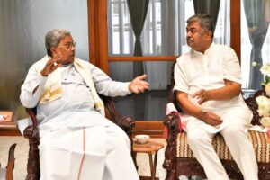 ಎಐಸಿಸಿ ಪ್ರಧಾನ ಕಾರ್ಯದರ್ಶಿ ಹಾಗೂ ವಿಧಾನ ಪರಿಷತ್ ಸದಸ್ಯ ಬಿ.ಕೆ. ಹರಿಪ್ರಸಾದ್ ಅವರ ನಿವಾಸಕ್ಕೆ ಇಂದು ಮುಖ್ಯಮಂತ್ರಿ ಸಿದ್ದರಾಮಯ್ಯ ಅವರು ಭೇಟಿ ನೀಡಿದ್ದಾರೆ.