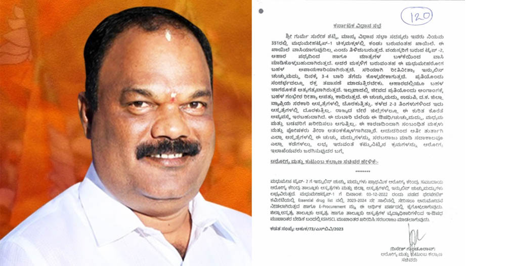 ಇದಕ್ಕೆ ಉತ್ತರಿಸಿದ ಆರೋಗ್ಯ ಮತ್ತು ಕುಟುಂಬ ಕಲ್ಯಾಣ ಸಚಿವರಾದ ದಿನೇಶ್ ಗುಂಡೂರಾವ್ ಅವರು ಮಧುಮೇಹ ಟೈಪ್- 21ಗೆ ಇನ್ಸುಲಿನ್ ಚುಚ್ಚು ಮದ್ದುಗಳು ಪ್ರಾಥಮಿಕ ಆರೋಗ್ಯ, ಕೇಂದ್ರ ಸಮುದಾಯ ಆರೋಗ್ಯ ಕೇಂದ್ರ ತಾಲೂಕು ಆಸ್ಪತ್ರೆಗಳು ಮತ್ತು ಜಿಲ್ಲಾ ಆಸ್ಪತ್ರೆಗಳಲ್ಲಿ ಇನ್ಸುಲಿನ್ ಚುಚ್ಚುಮದ್ದುಗಳ ಲಭ್ಯವಿರುತ್ತದೆ. ಮಧುಮೇಹ ಟೈಪ್ -1 ಗೆ ದಿನಾಂಕ: 03-12-2022 ರಂದು ನಡೆದ ಥೆರಪೇಟಿಕ್ ಕಮೀಟಿಯಲ್ಲಿ Essential dug list ನಲ್ಲಿ, 2023-24 ನೇ ಸಾಲಿನಲ್ಲಿ ಸೇರಿಸಲು ಅನುಮೋದನೆ ನೀಡಲಾಗಿರುತ್ತದೆ. ಹಾಗೂ E-Procutenent ನ್ನು ಈ ಆರ್ಥಿಕ ವರ್ಷದಲ್ಲಿ ಕೈಗೊಳ್ಳಲಾಗುವುದು. ಜಿಲ್ಲಾ ಆಸ್ಪತ್ರೆ, ತಾಲ್ಲೂಕು ಆಸ್ಪತ್ರೆ ಹಾಗೂ ತಾಲೂಕು ಆಸ್ಪತ್ರೆಗಳ ವೈದ್ಯಾಧಿಕಾರಿಗಳಿಂದ ಇ-ಔಷಧ ಮುಖಾಂತರ ಬೇಡಿಕೆ ಬಂದಲ್ಲಿ KSMSCL ಮುಖಾಂತರ ಖರೀದಿಸಿ ಸರಬರಾಜು ಮಾಡಲಾಗುವುದು ಎಂದು ತಿಳಿಸಿರುತ್ತಾರೆ.