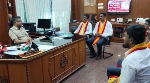 ಕರ್ನಾಟಕ ರಕ್ಷಣಾ ವೇದಿಕೆ ನಾರಾಯಣ ಗೌಡ ಬಣದ ಜಿಲ್ಲಾ ಮುಖಂಡರು ಉಡುಪಿ ಜಿಲ್ಲೆಯ ನೂತನ ಪೊಲೀಸ್ ವರಿಷ್ಠಾಧಿಕಾರಿ ಹರಿರಾಂ ಶಂಕರ್ ಅವರನ್ನು ಜಿಲ್ಲೆಗೆ ಸ್ವಾಗತಿಸುವ ಮೂಲಕ ಗೌರವಿಸಿದ್ರು. ಜಿಲ್ಲೆಯಲ್ಲಿ ಕಾನೂನು ಸುವ್ಯವಸ್ಥೆಯನ್ನು ಬಲಪಡಿಸಿ ಶಾಂತಿ ಕಾಪಾಡುವಂತೆ, ಅಕ್ರಮ ವ್ಯವಹಾರಗಳಿಗೆ ಕಡಿವಾಣ ಹಾಕುವಂತೆ ಕರ್ನಾಟಕ ರಕ್ಷಣಾ ವೇದಿಕೆ ವತಿಯಿಂದ ವಿನಂತಿಸಲಾಯಿತು.