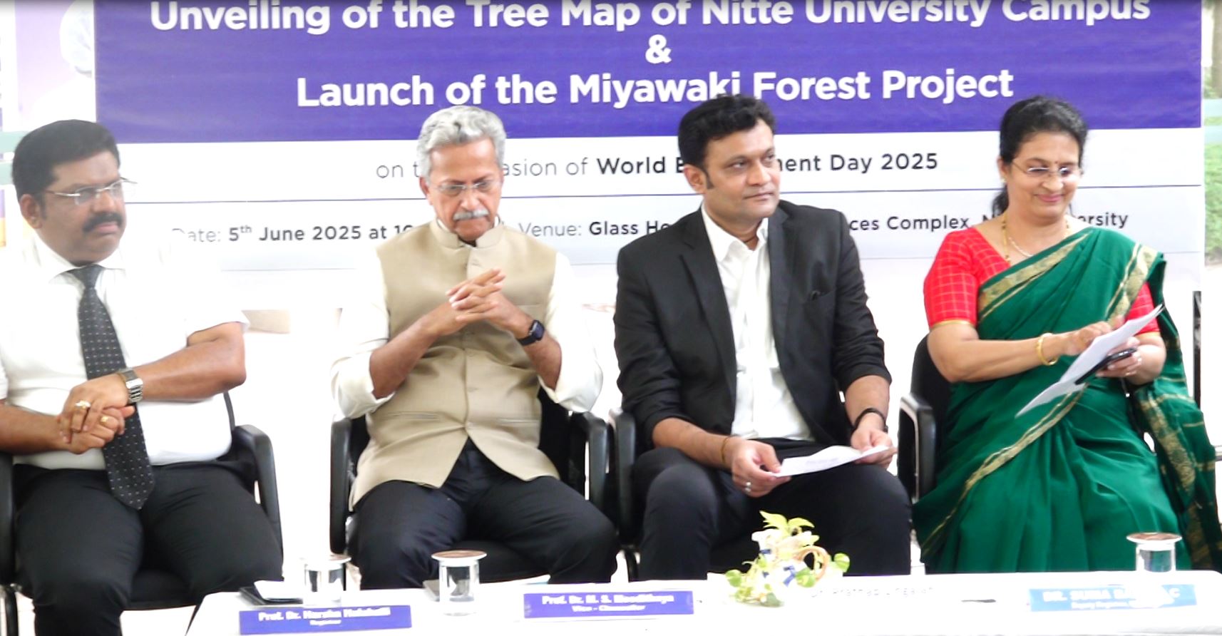 ಕರ್ನಾಟಕ ಸರಕಾರದ ಯುವಸಬಲೀಕರಣ ಮತ್ತು ಕ್ರೀಡಾ ಇಲಾಖೆಯ ರಾಷ್ಟ್ರೀಯ ಸೇವಾ ಯೋಜನೆಯ ರಾಜ್ಯ ಅಧಿಕಾರಿ ಡಾ.ಪ್ರತಾಪ್ ಲಿಂಗಯ್ಯ ನಿಟ್ಟೆ ವಿಶ್ವವಿದ್ಯಾಲಯದ ವೃಕ್ಷ ನಕ್ಷೆ ಅನಾವರಣ ಮತ್ತು ಮಿಯಾವಕಿ ಅರಣ್ಯ ಯೋಜನೆಗೆ ಚಾಲನೆ ನೀಡಿದ್ರು. ಬಳಿಕ ಮಾತನಾಡಿದ ಅವರು, ಜಪಾನಿನ ಆಧುನಿಕ ತಂತ್ರಜ್ಞಾನವಾದ ಮಿಯಾವಕಿ ಅರಣ್ಯ ಯೋಜನೆ ಇಲ್ಲಿ ಅಳವಡಿಸಿರುವುದು ಉತ್ತಮ ಕಾರ್ಯವಾಗಿದೆ. ಎಲ್ಲಾ ಸಂಸ್ಥೆಯಲ್ಲಿ ಈ ಯೋಜನೆ ಮಾಡಿದರೆ ಪರಿಸರ ರಕ್ಷಣೆ ಆಗುತ್ತದೆ, ಮುಂದಿನ ಪೀಳಿಗೆಗೆ ಪರಿಸರ ರಕ್ಷಿಸುವುದು ನಮ್ಮ ಕರ್ತವ್ಯವಾಗಿದೆ ಎಂದಿದ್ದಾರೆ.
