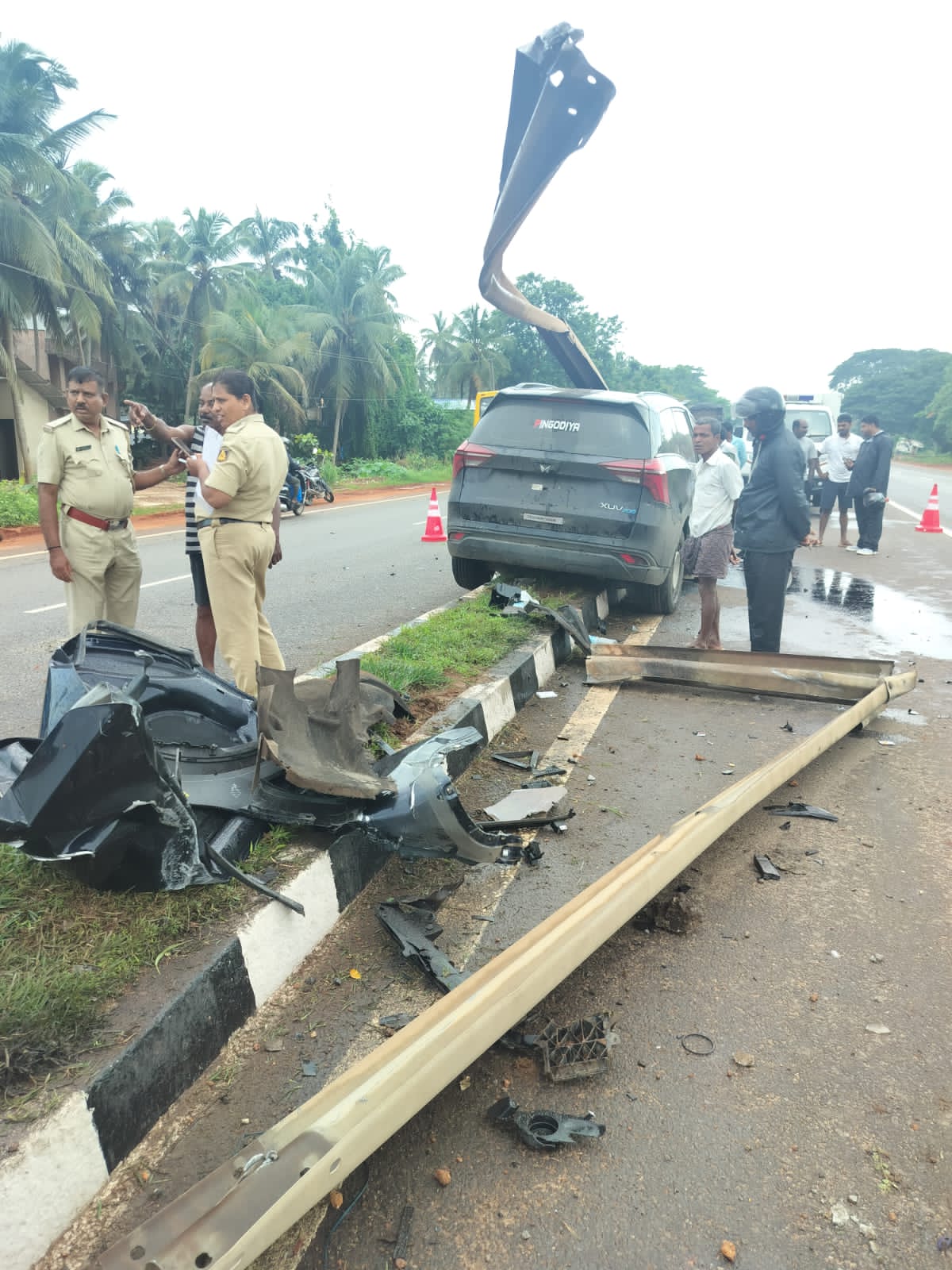 ಮಂಗಳೂರಿನಿ0ದ ಹರಿಯಾಣಕ್ಕೆ ತೆರಳುತ್ತಿದ್ದ ಎಕ್ಸ್ ಯುವಿ ಕಾರು ಅಪಘಾತಕ್ಕೀಡಾಗಿದೆ. ಕಾರಿನಲ್ಲಿ ಪ್ರಯಾಣಿಸುತ್ತಿದ್ದ ಮೂವರು ಸಣ್ಣಪುಟ್ಟ ಗಾಯಗಳೊಂದಿಗೆ ಅಪಾಯದಿಂದ ಪಾರಾಗಿದ್ದಾರೆ. ಡಿವೈಡರ್ ಮೇಲಿನ ಕ್ರಾಶ್ ಗಾರ್ಡ್ ಸಹಿತ ಕಾರು ನಜ್ಜುಗುಜ್ಜಾಗಿದೆ. ಸ್ಥಳಕ್ಕೆ ಕಾಪು ಪೊಲೀಸರು ಭೇಟಿ ನೀಡಿ ಪರಿಶೀಲನೆ ನಡೆಸಿದ್ದಾರೆ.