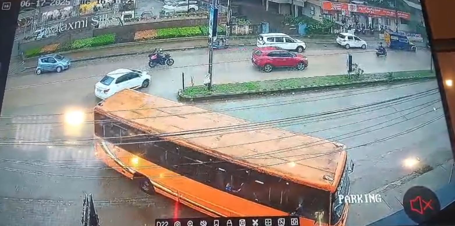 ಪರಿಣಾಮ ಬಸ್ಸ್ 18 ಡಿಗ್ರಿ ತಿರುಗಿ ನಿಂತಿದೆ. ಇದರಿಂದ ಬಸ್ಸಿನಲ್ಲಿದ್ದ ಹಿರಿಯರು, ಮಹಿಳೆಯರು, ಮಕ್ಕಳು ಸೇರಿದಂತೆ ಎಲ್ಲಾ ಪ್ರಯಾಣಿಕರು ತೀವ್ರ ಆತಂಕಕ್ಕೊಳಪಟ್ಟು ಕಿರುಚಾಡಿದ್ದಾರೆ. ಇಷ್ಟೆಲ್ಲಾ ಆದ್ರೂ ಚಾಲಕ ತನ್ನ ತಪ್ಪಿನ ಅರಿವಿಲ್ಲದಂತೆ, ಏನೂ ಅಗೇ ಇಲ್ಲವೆಂಬಂತೆ ಬಸ್ಸನ್ನು ಮತ್ತೆ ಅತಿ ವೇಗವಾಗಿ ಚಲಾಯಿಸಿಕೊಂಡು ಹೋಗಿದ್ದಾನೆ. ಅಷ್ಟಕ್ಕೆ ನಿಲ್ಲಸದೇ ಮುಂದೆ ಸಾಗಿ ರಾಂಗ್ ಸೈಡ್ನಲ್ಲಿ ಚಲಿಸಿ ಅಪಾಯಕಾರಿಯಾಗಿ ಯುಟರ್ನ್ ಪಡೆದು ತನ್ನ ದಾರಿಯಲ್ಲಿ ಮುಂದುವರಿದಿದ್ದಾನೆ. ಚಾಲಕನ ಈ ಬೇಜವಾಬ್ದಾರಿ ವರ್ತನೆಗೆ ಸಾರ್ವಜನಿಕರು ತೀವ್ರ ಆಕ್ರೋಶ ವ್ಯಕ್ತಪಡಿಸಿದ್ದಾರೆ. ಇವರ ವಿರುದ್ಧ ಸೂಕ್ತ ಕ್ರಮಕೈಗೊಳ್ಳುವಂತೆ ಸಾರ್ವಜನಿಕರಿಗೆ ಪೊಲೀಸರು ಒತ್ತಾಯಿಸಿದ್ದಾರೆ.