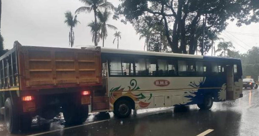 ಕಾರ್ಕಳ: ಬಸ್, ಟಿಪ್ಪರ್ ಡಿಕ್ಕಿ- ಚಾಲಕನಿಗೆ ಗಂಭೀರ ಗಾಯ..!